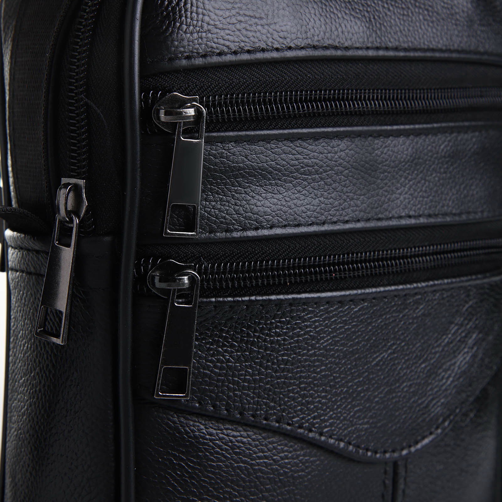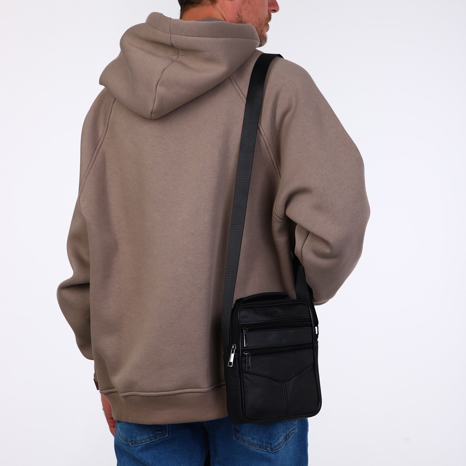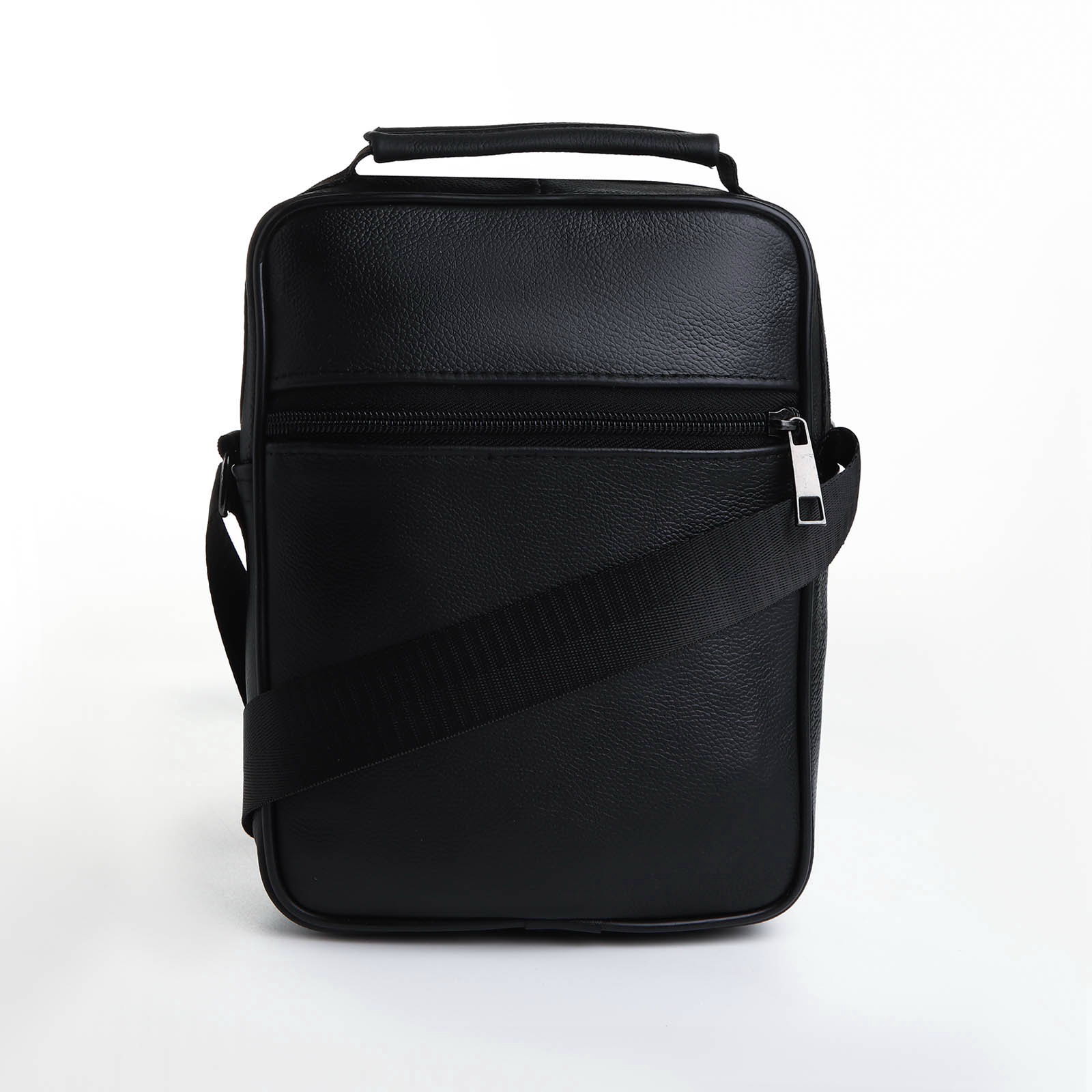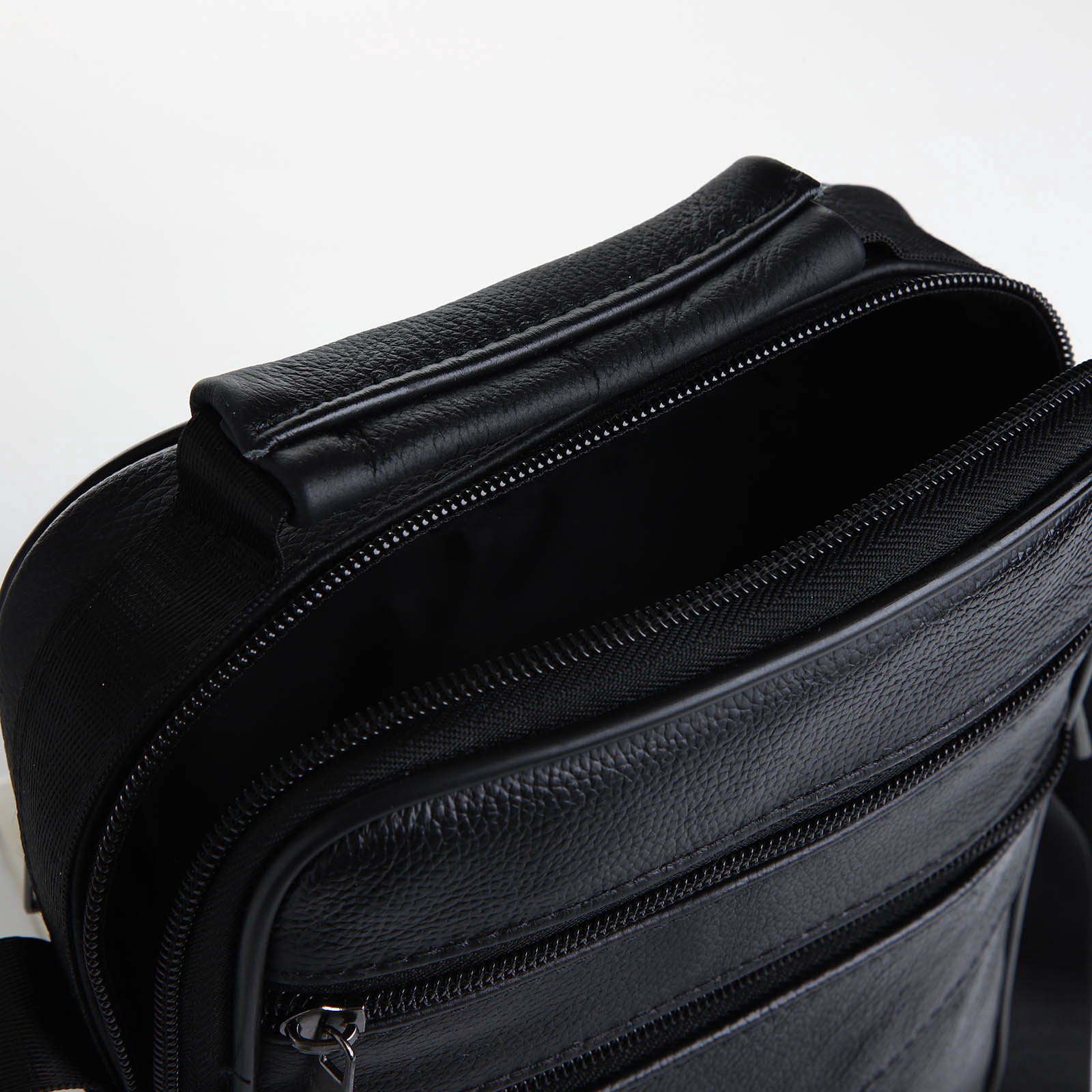 Сумка мужская на молнии, 3 наружных кармана, с ручкой, длинный ремень, чёрная, 5.5x18x22 см., Китай