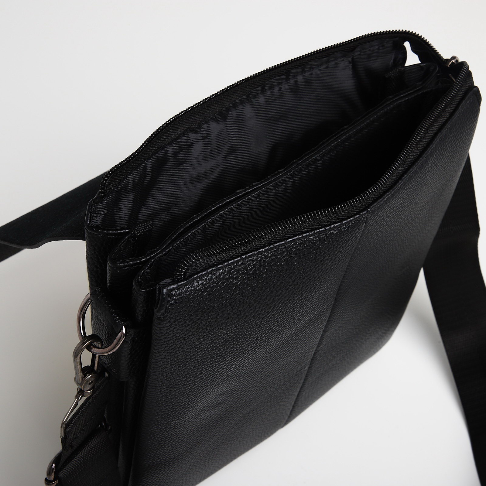 Сумка планшет мужская 2 отдела на молнии, наружный карман, 22x4x26 см, чёрная, 4x22x26 см., TEXTURA, Китай