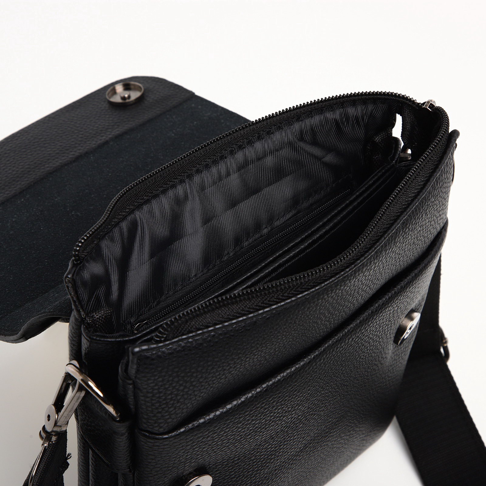 Сумка планшет мужская 2 отдела на молнии, наружный карман, 19x3x23 см, чёрная, 3x19x23 см., TEXTURA, Китай