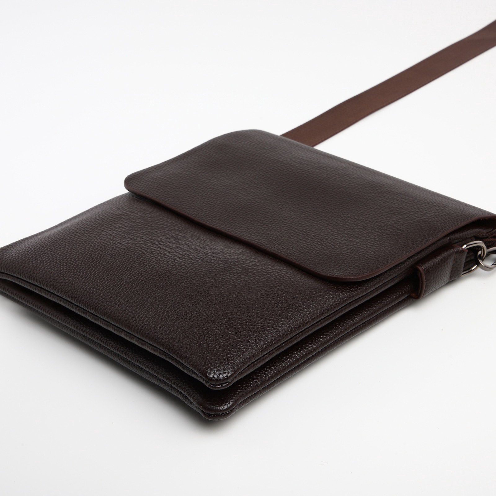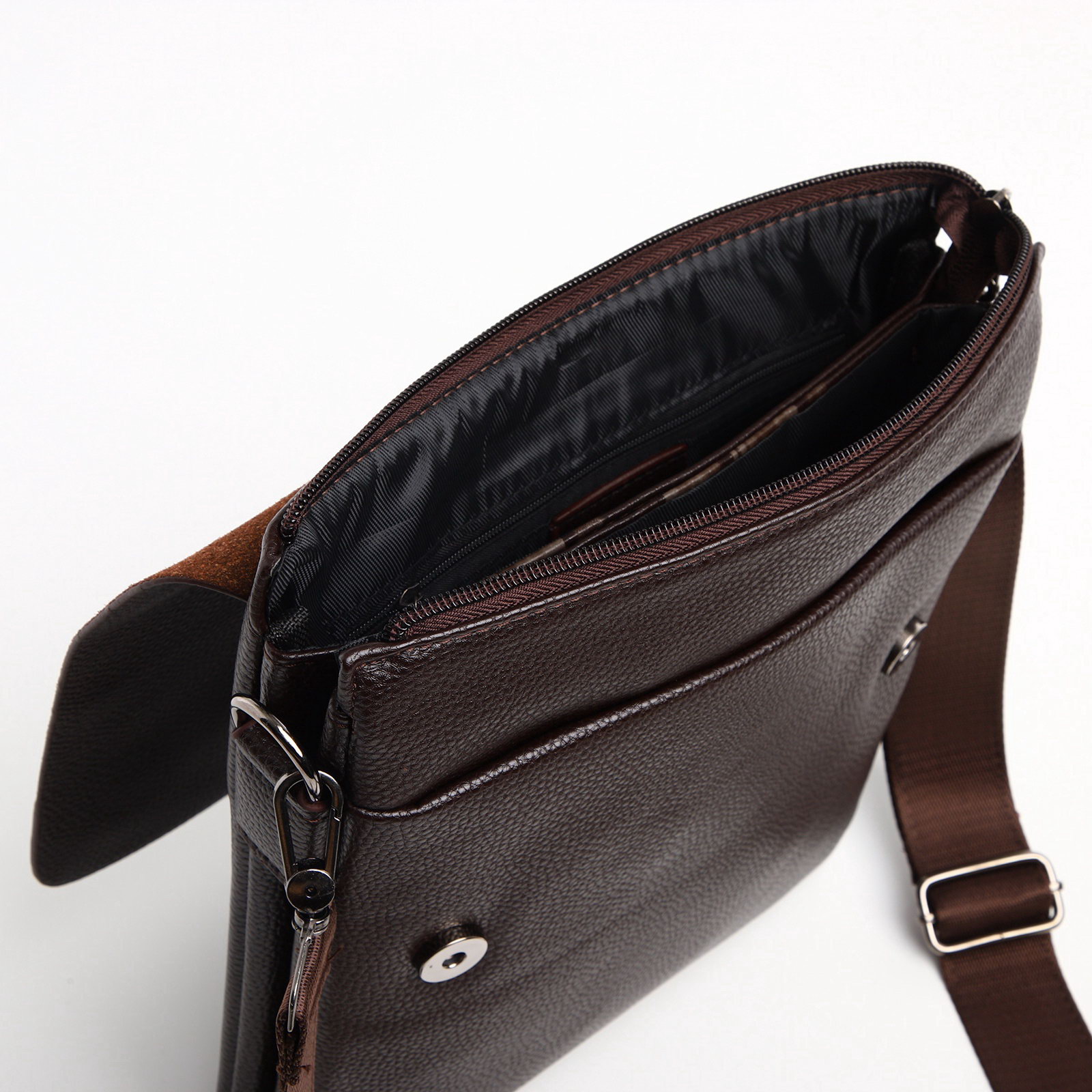 Сумка планшет мужская 2 отдела на молнии, наружный карман, 23x4x26 см, коричневая, 4x23x26 см., TEXTURA, Китай