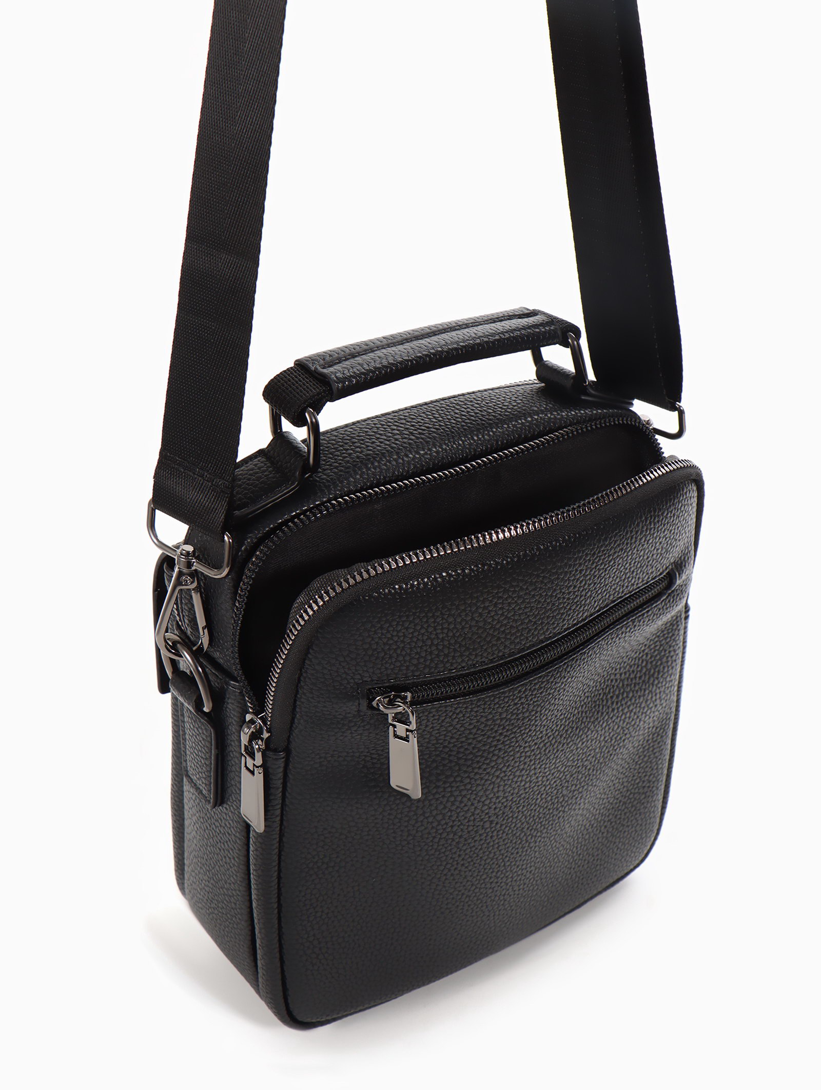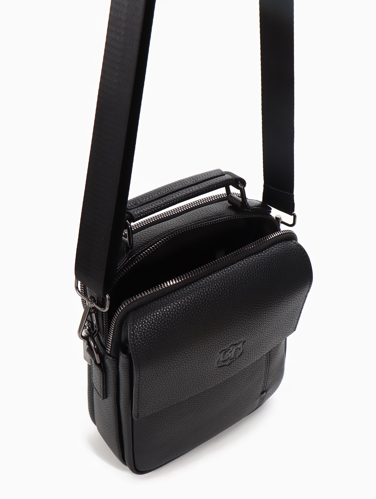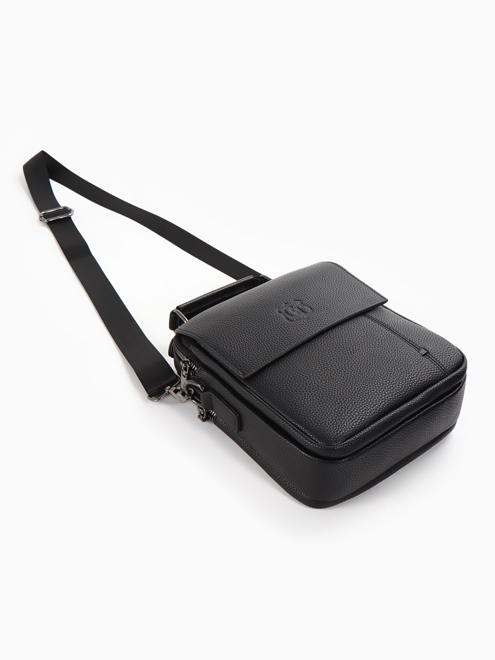 Размер упаковки: 8 x 23 x 19 см. tnved: 4202221000 Температурное ограничение: Нет Модель сумки: На длинном ремне Цвет: Чёрный Каркас: Полукаркас Способ ношения: Через плечо Вид застёжки: Молния Размер: Маленький см Для кого: Для мужчины Эта чёрная мужская сумка через плечо практичное решение для города. Компактный размер подходит для ежедневного ношения, не стесняя движений. Длинный регулируемый ремень даёт свободу носить её удобно, а полукаркасная конструкция сохраняет аккуратный вид даже когда она не полностью заполнена. Особенности
