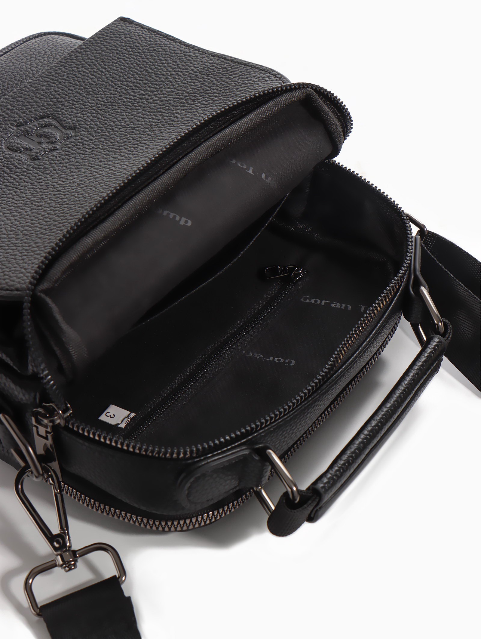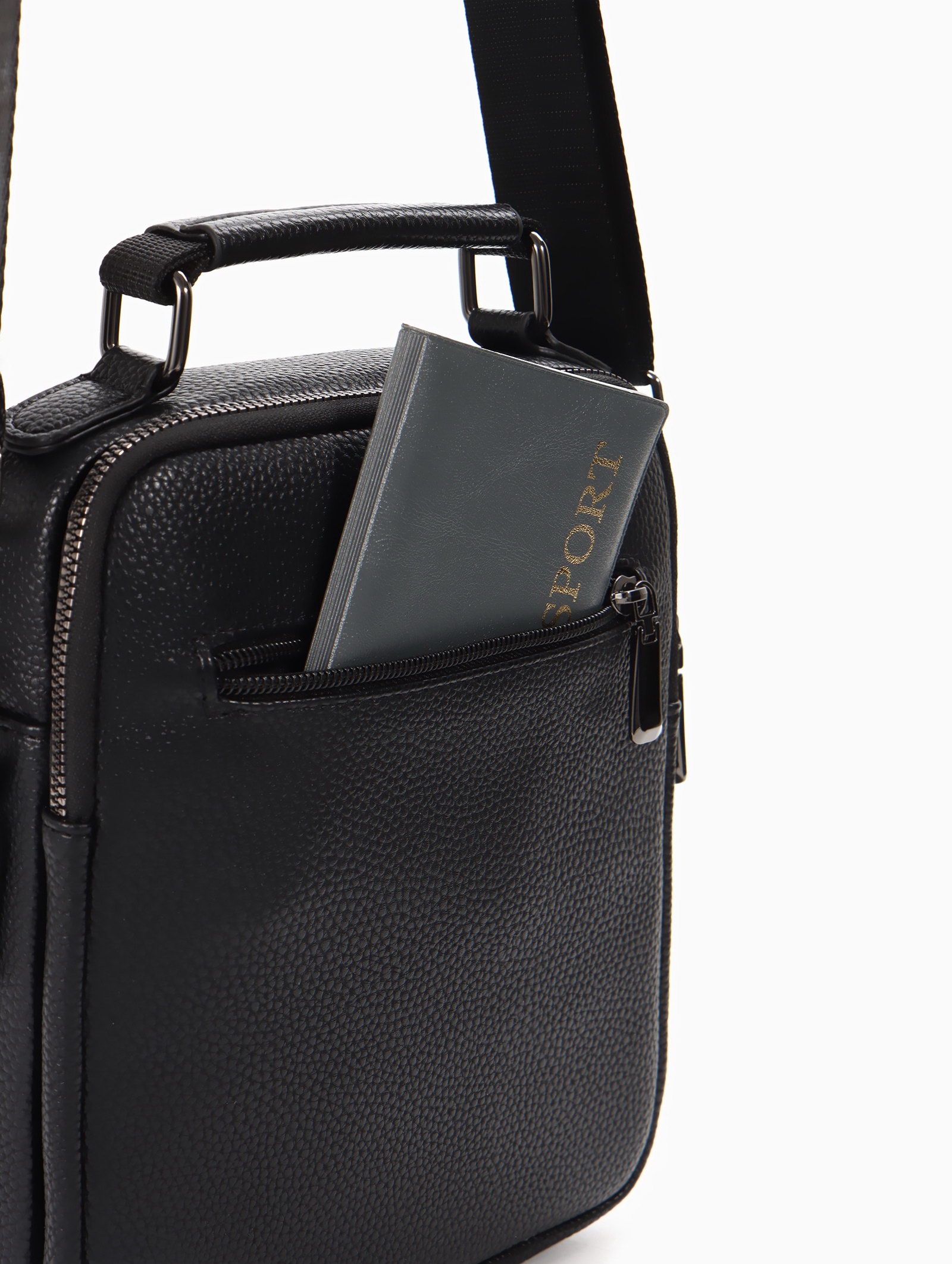 Сумка мужская, на молнии, 2 наружных кармана, с длинным ремнём, 19x8x23 см, чёрная, 8x19x23 см., Goran Tomp, Китай