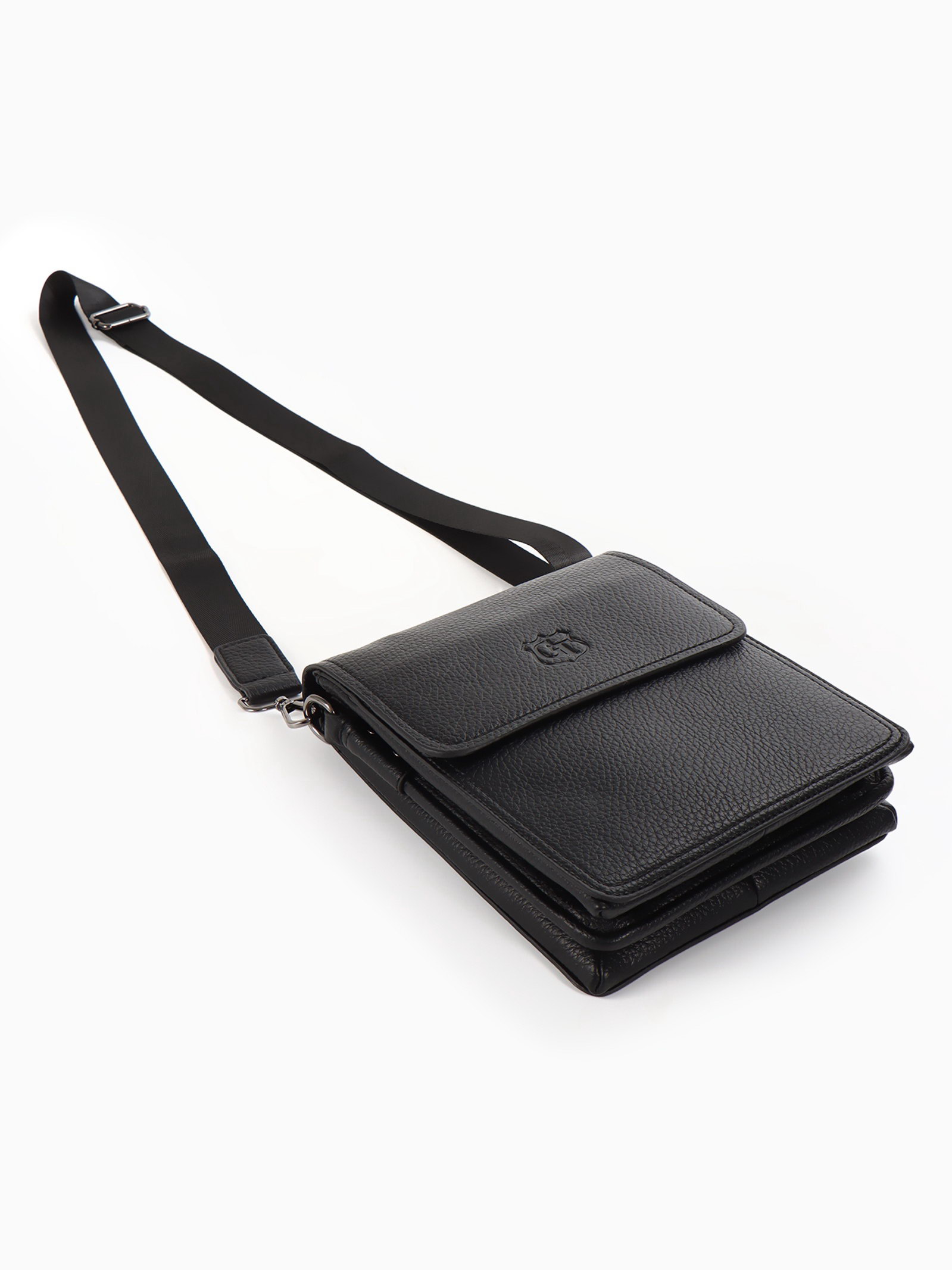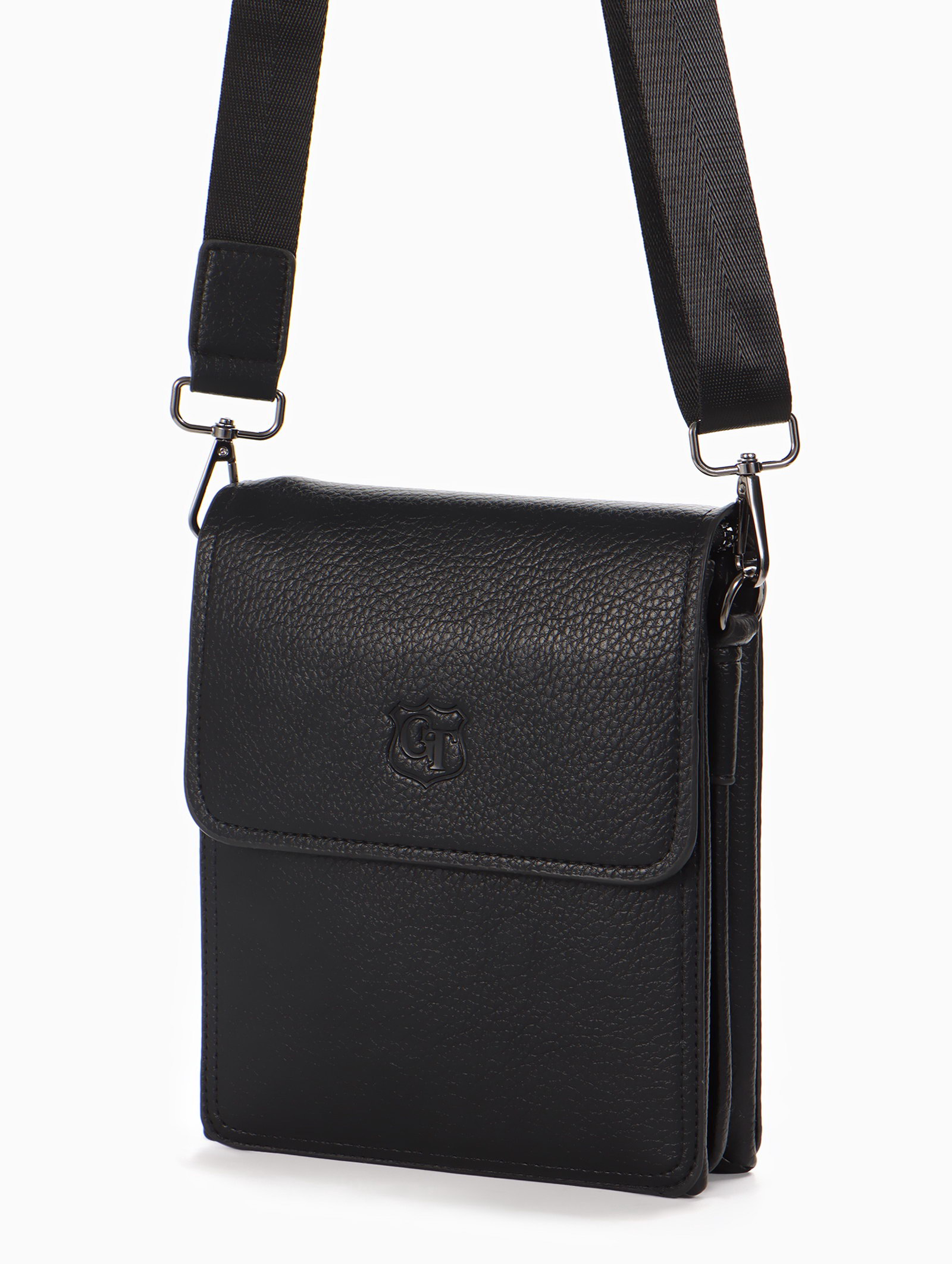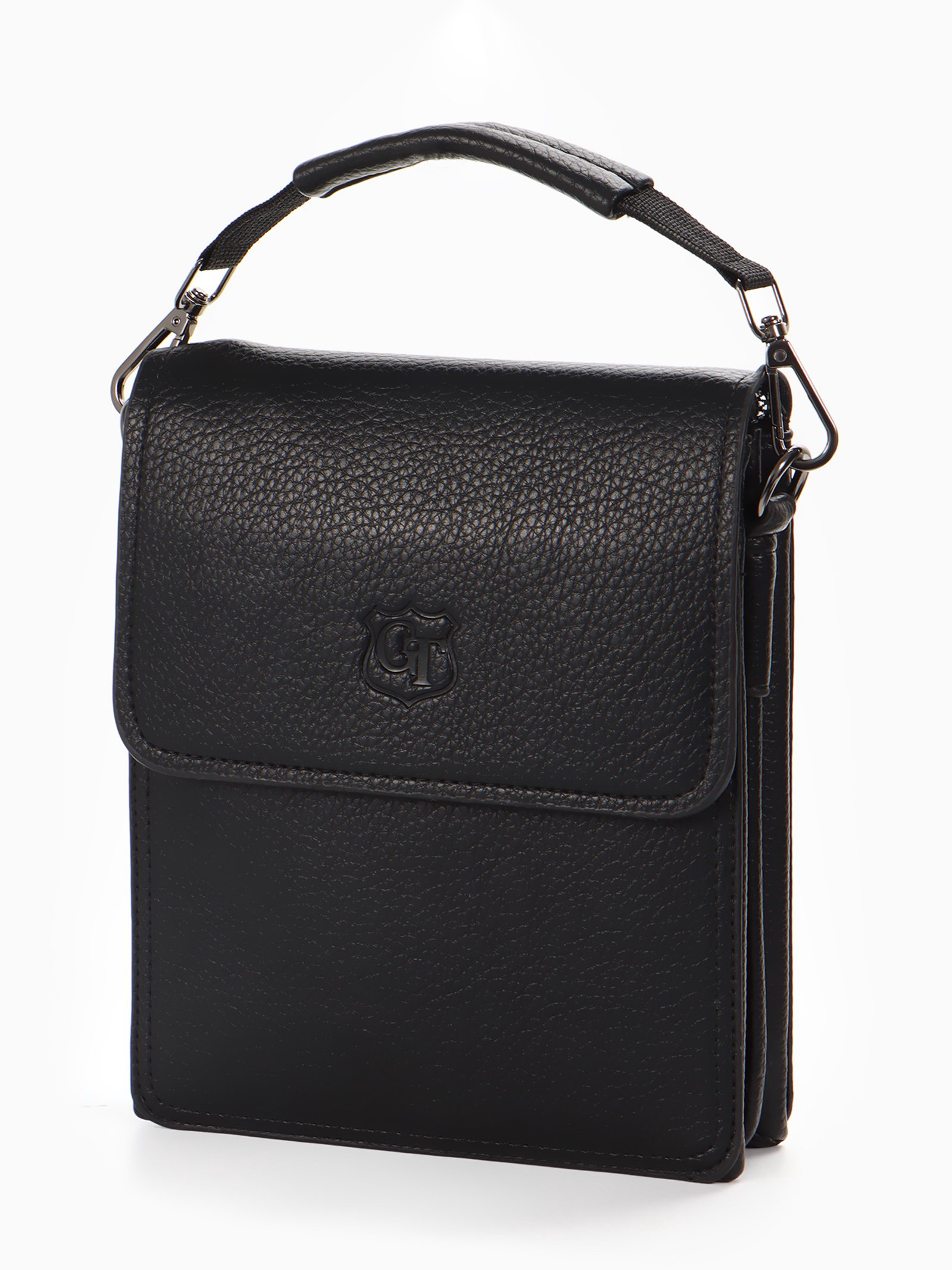 Сумка планшет мужская, на молнии, два наружных кармана, длинный ремень, 19x8x23 см, чёрная, 8x19x23 см., Goran Tomp, Китай
