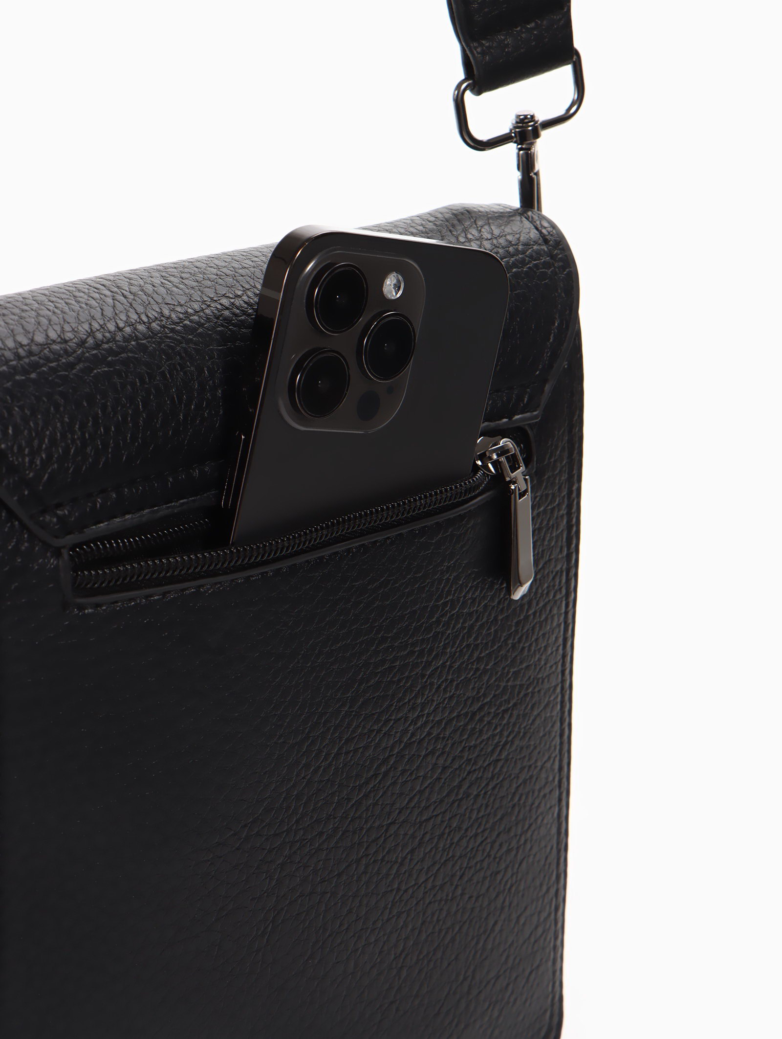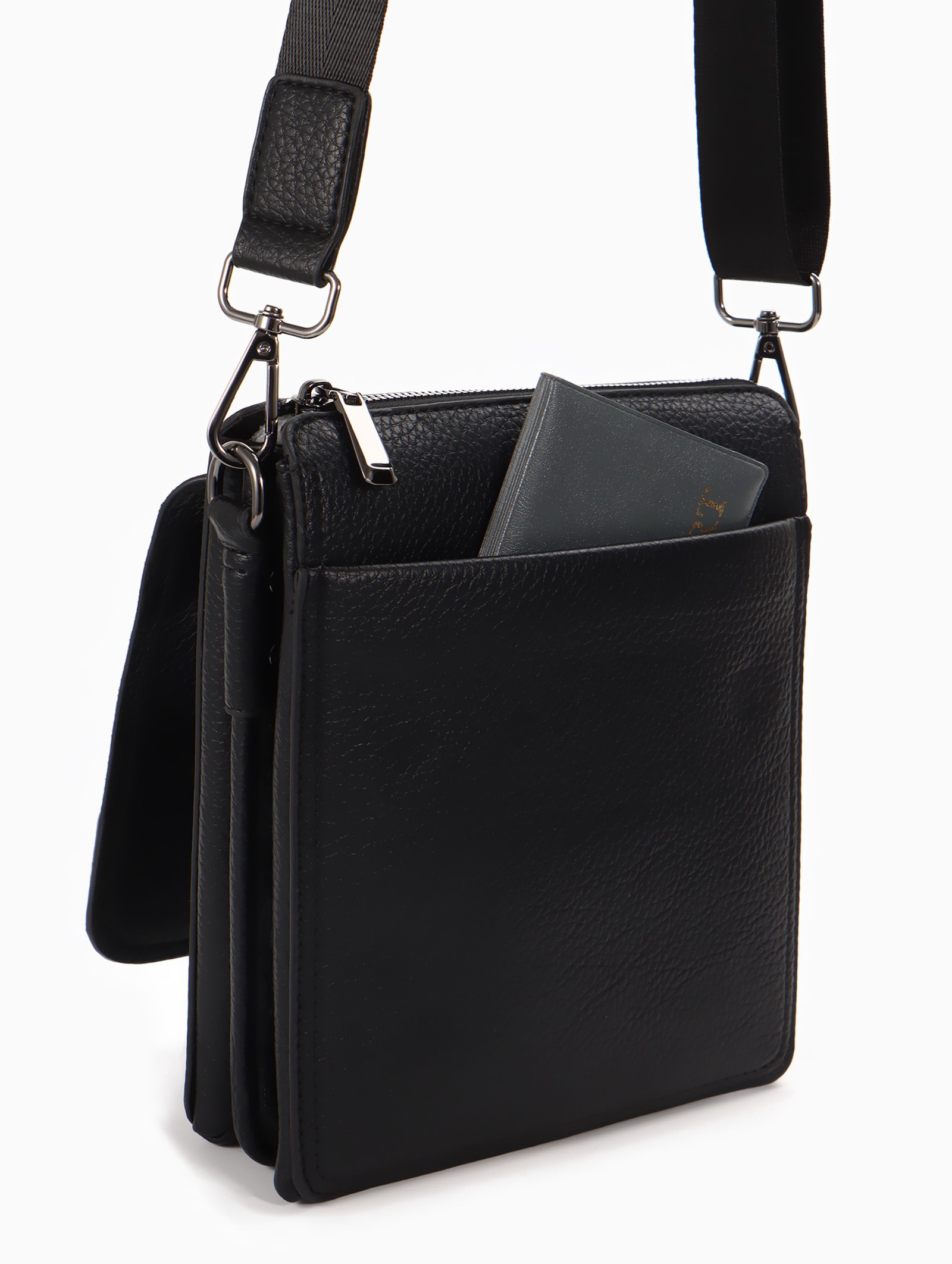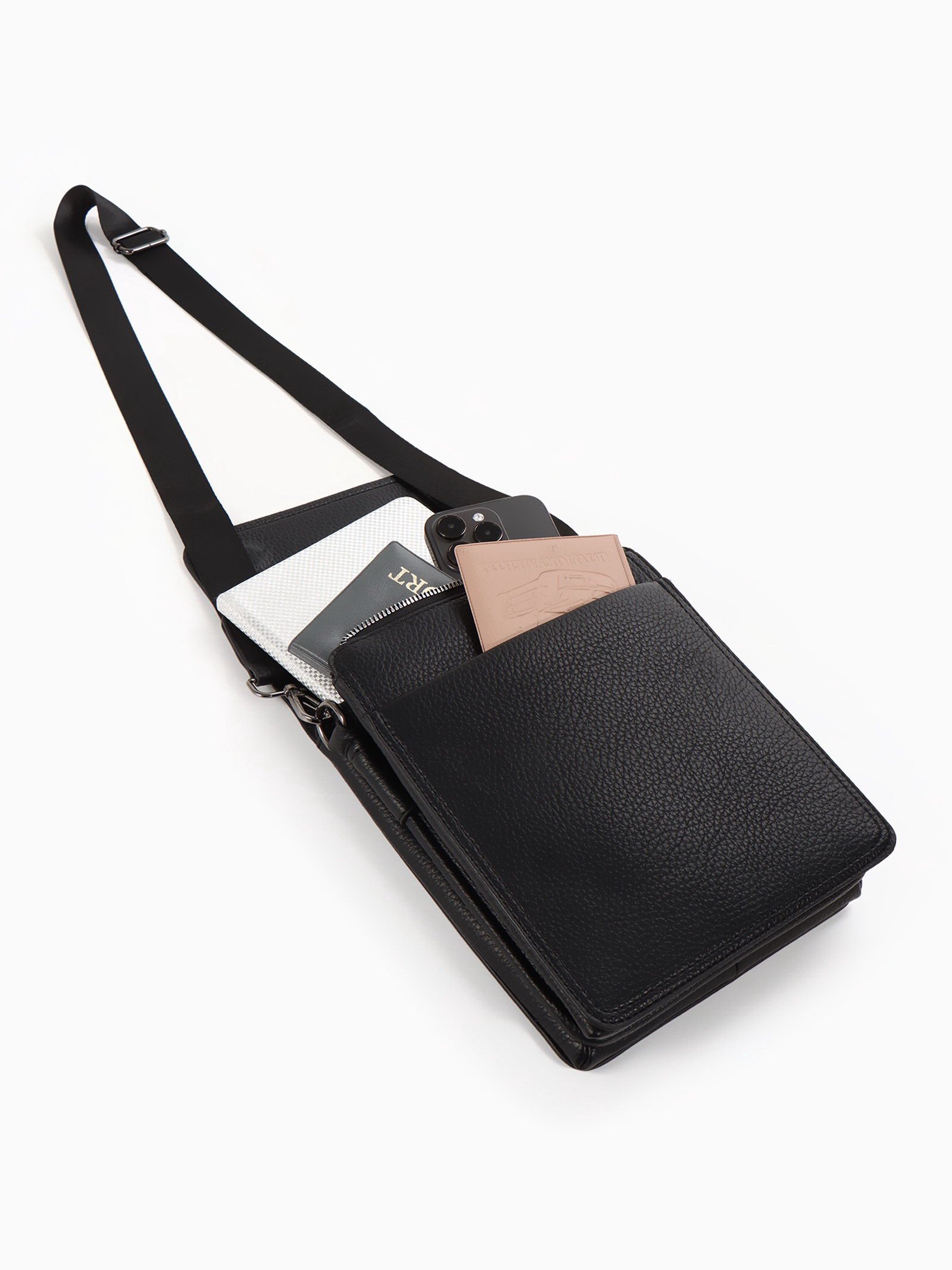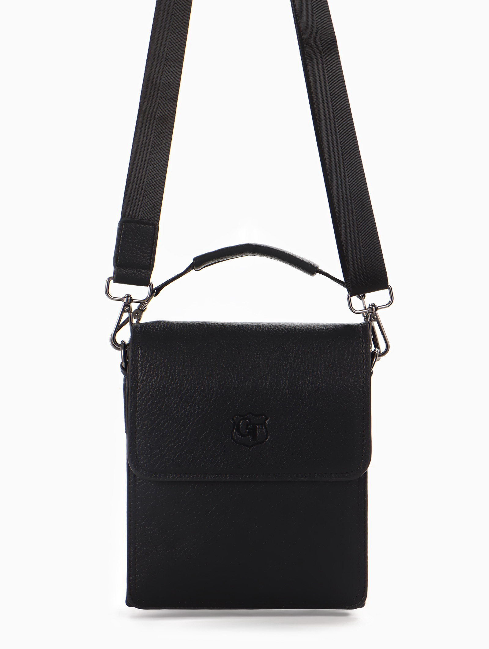 Сумка планшет мужская, на молнии, два наружных кармана, длинный ремень, 19x8x23 см, чёрная, 8x19x23 см., Goran Tomp, Китай