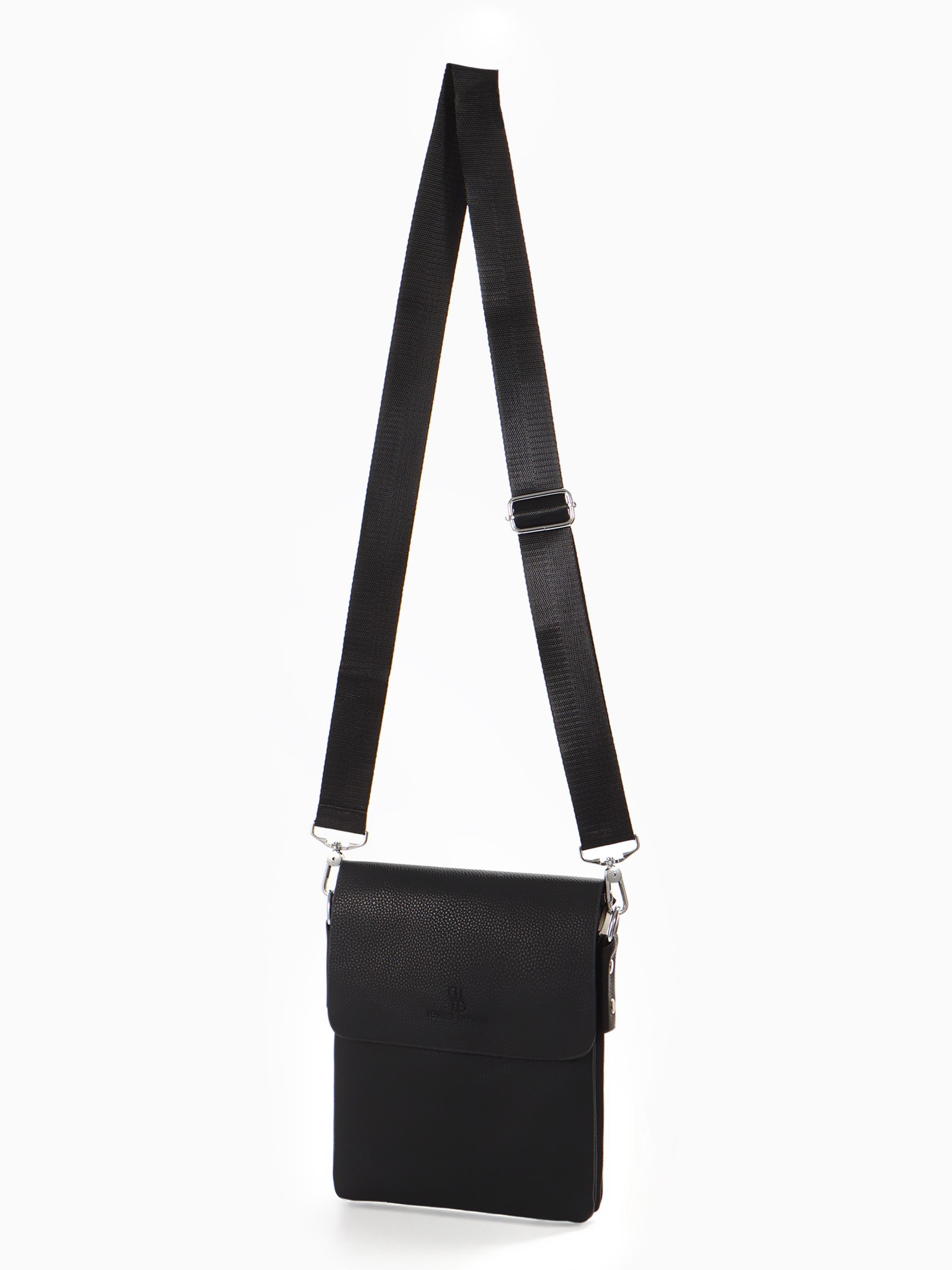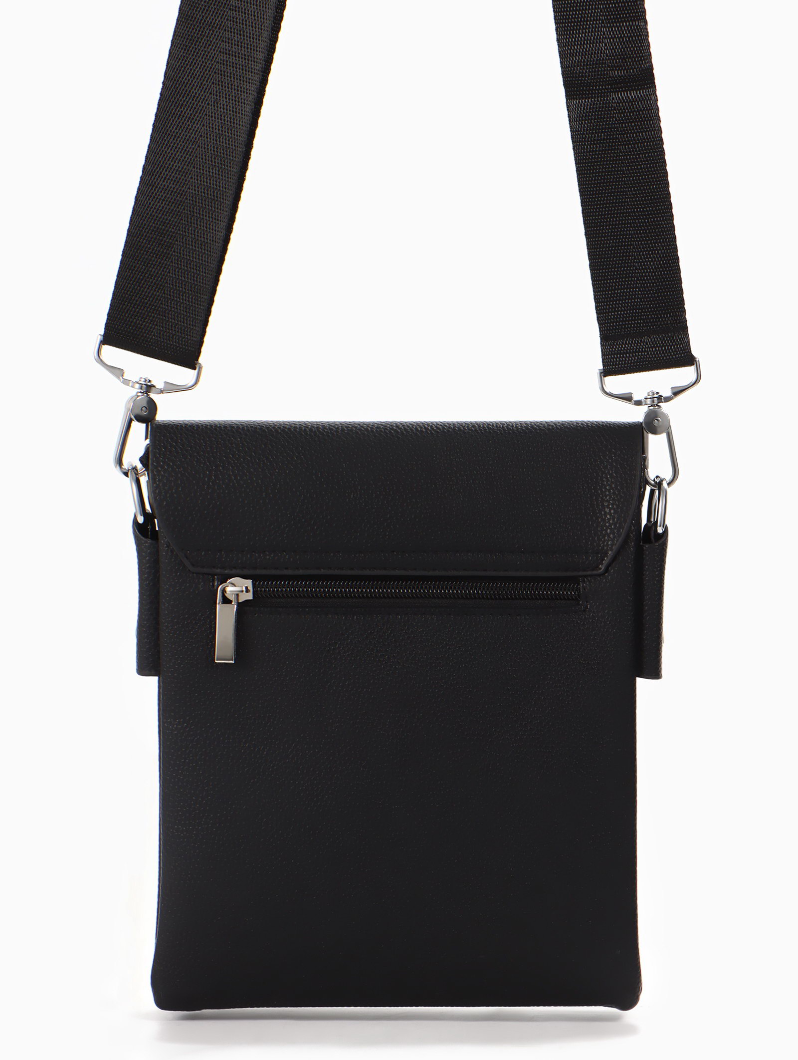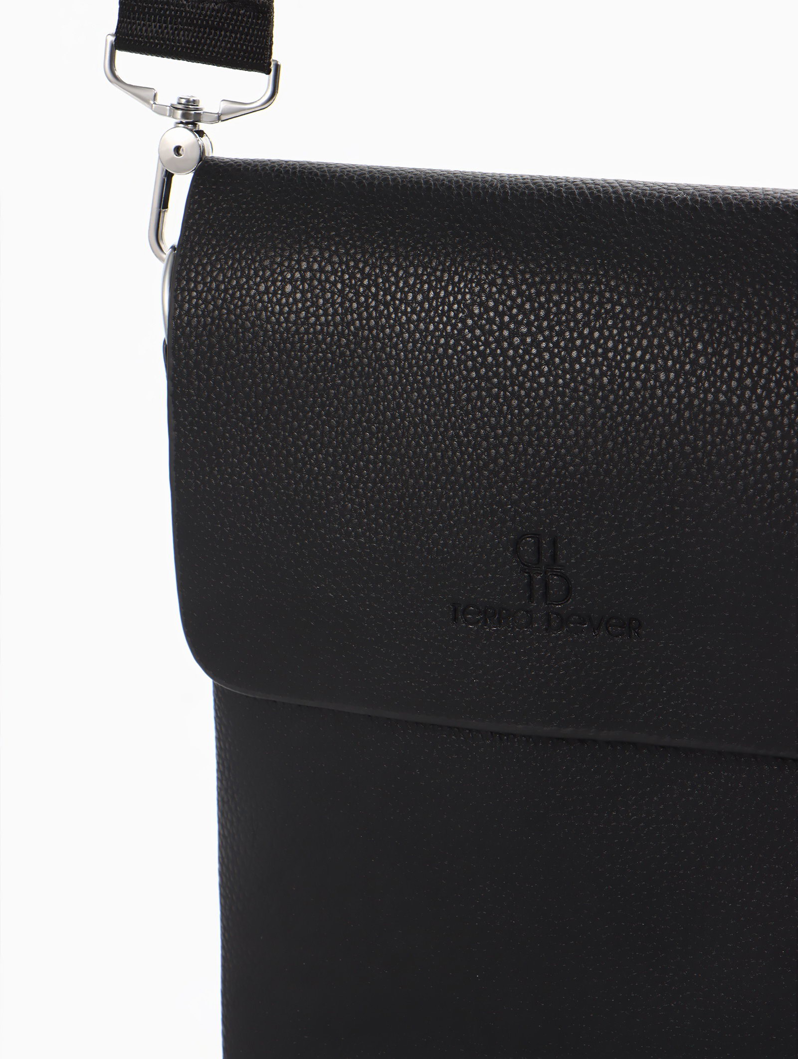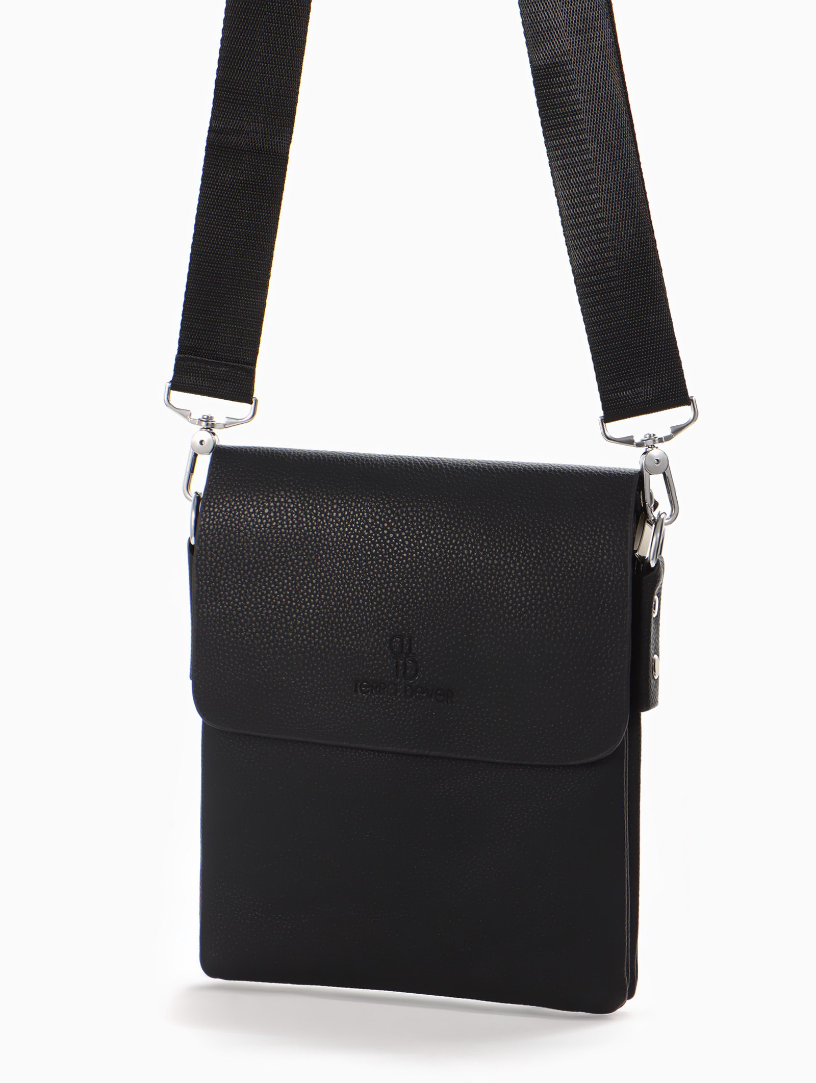 Сумка планшет мужская, 2 отделения, на молнии, длинный ремень, 19x2x23 см, чёрная, 2x19x23 см., Terra Dever, Китай