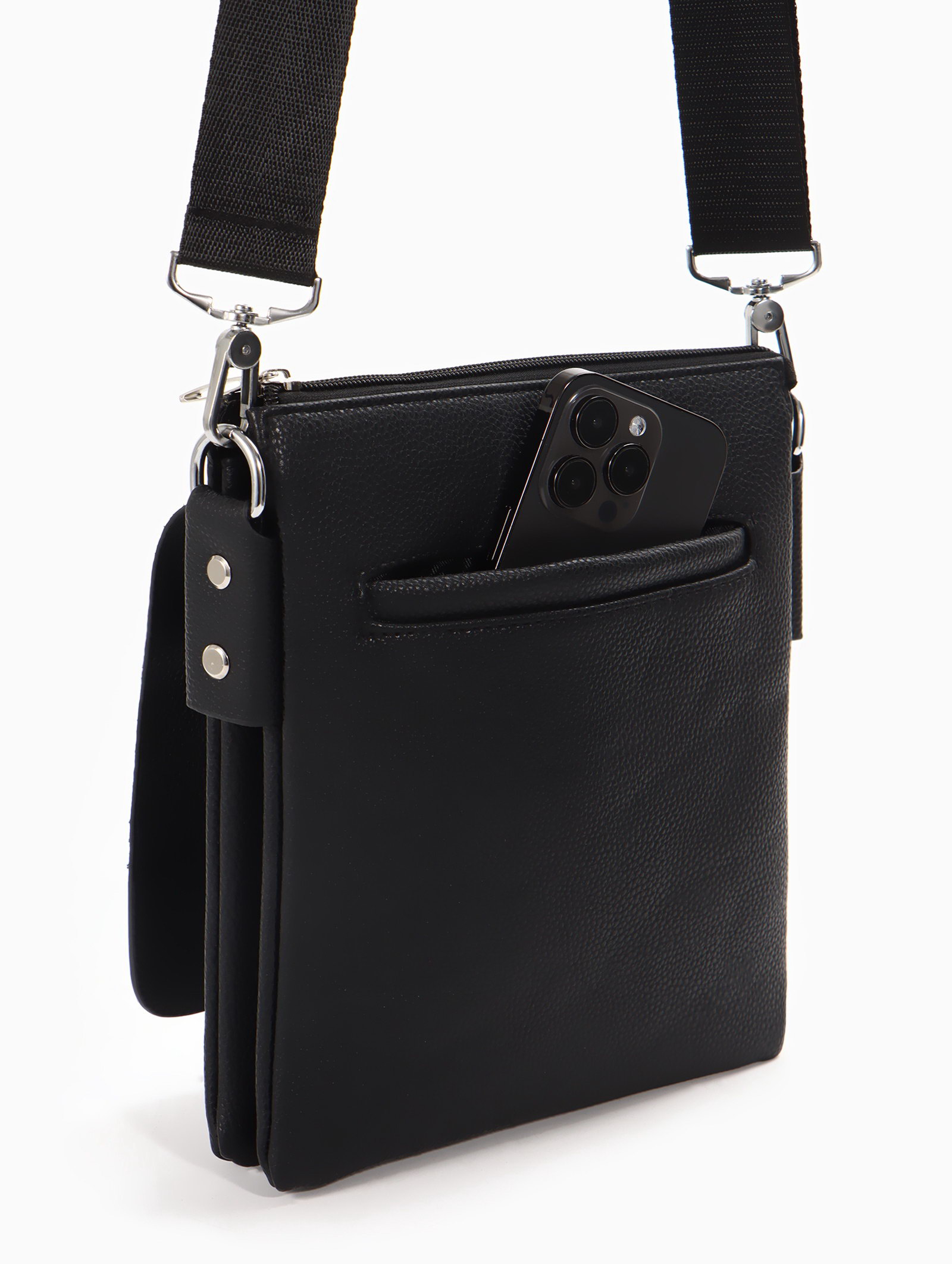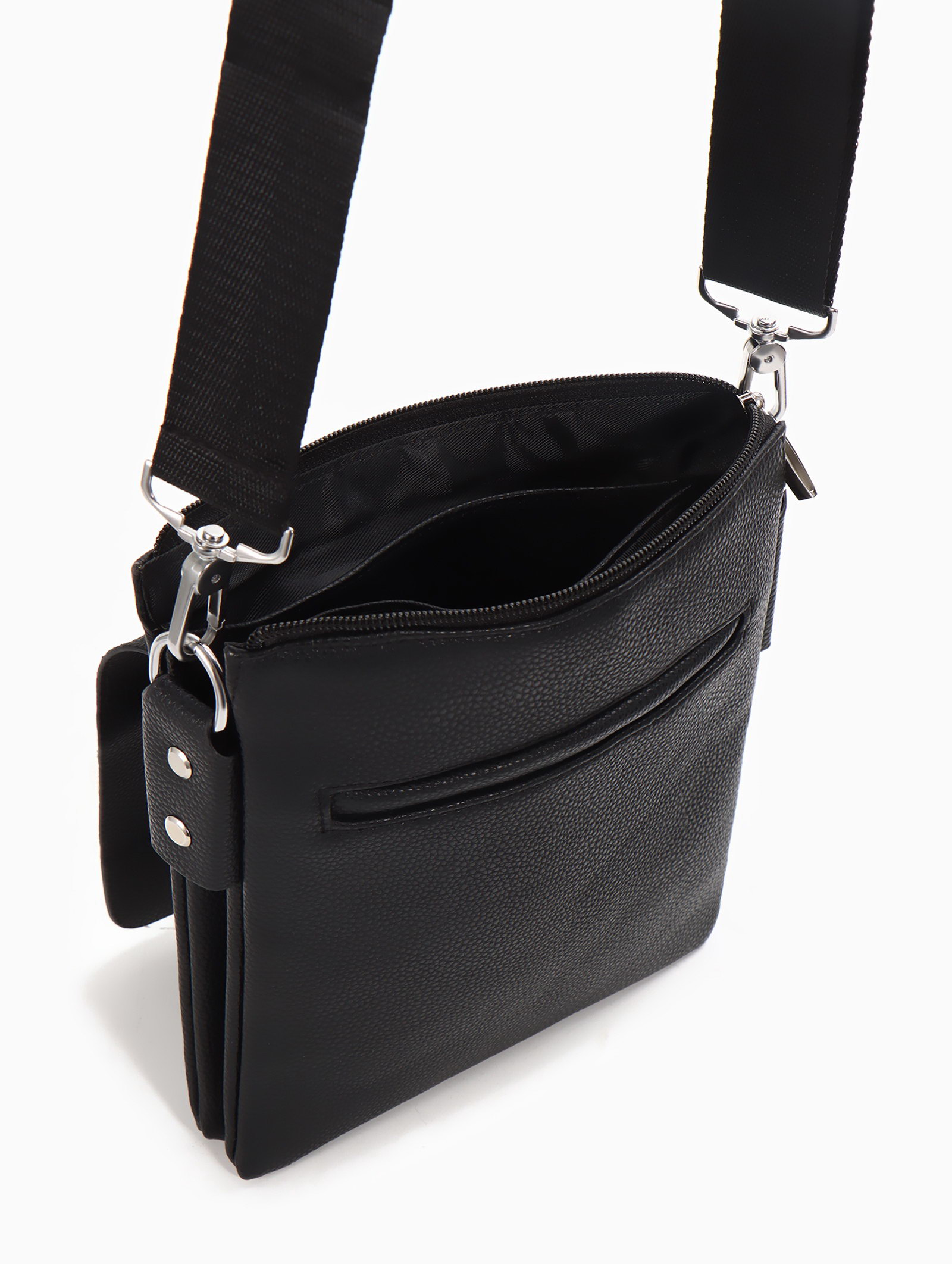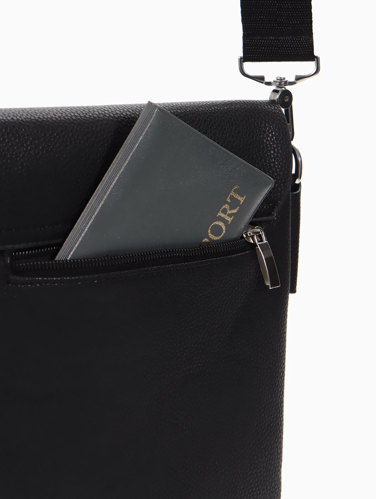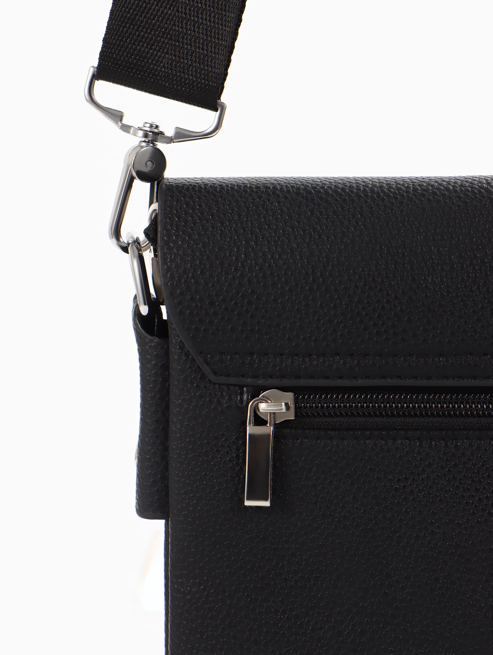 Сумка планшет мужская, 2 отделения, на молнии, длинный ремень, 19x2x23 см, чёрная, 2x19x23 см., Terra Dever, Китай
