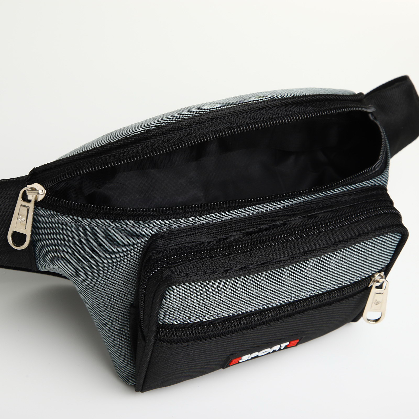 Сумка поясная на молнии, 3 наружных кармана, серая, чёрная, 8x32x13.5 см., Китай