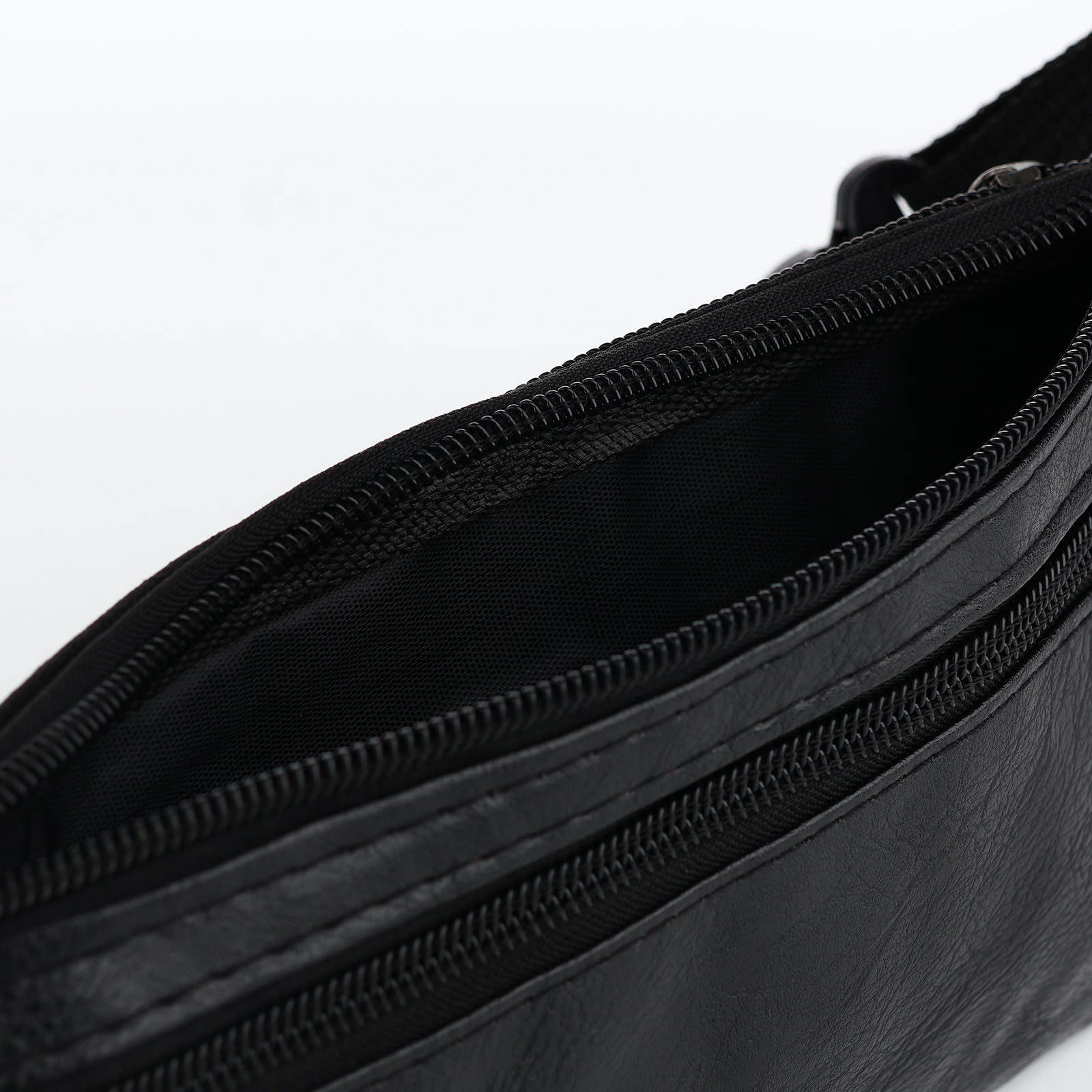 Поясная сумка на молнии, 2 наружных кармана, цвет чёрный, 1.5x30x10 см., Китай