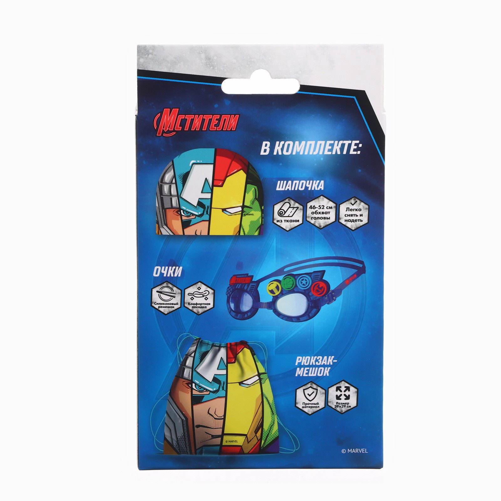Набор детский для купания "Мстители", шапочка, очки для плавания, мешок, 27x26x8 см., MARVEL, Китай