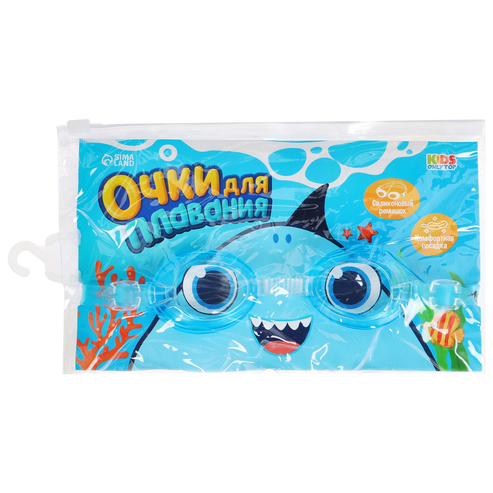 Очки для плавания детские "На волне: Акула", беруши, цвет голубой, 13x22x1 см., ONLYTOP, Китай