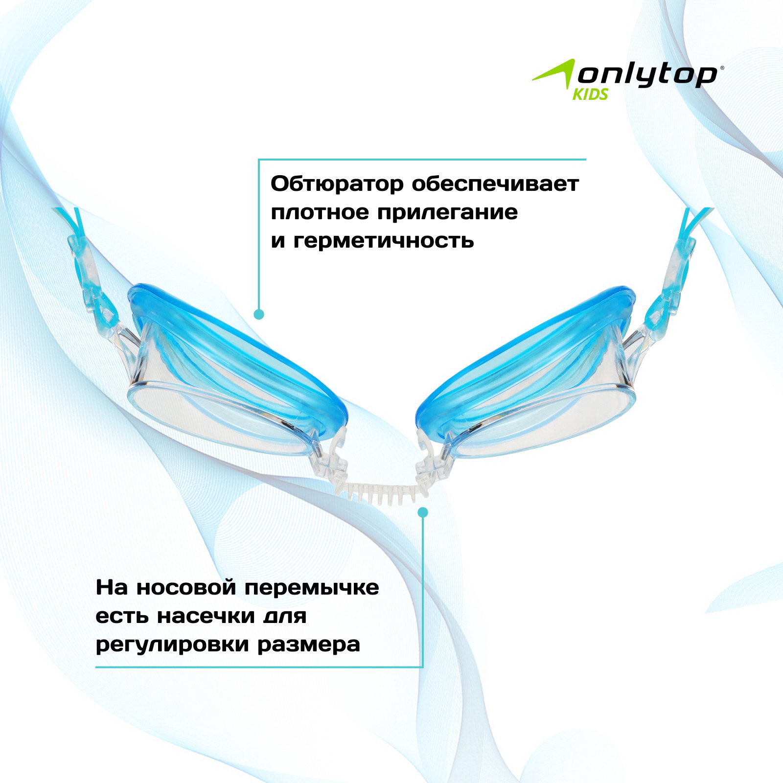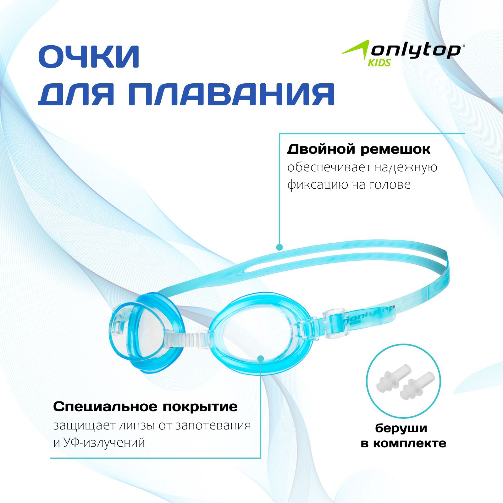 Размер упаковки: 12 x 3 x 20 см. Возраст: Детский Цвет: Голубой Комплектация: Беруши Защита от ультрафиолета: Нет tnved: 9004909000 Стартовые очки для плавания Onlitop защищают глаза от попадания воды и содержащегося в ней хлора. Силиконовый обтюратор не пропускает воду, поэтому в очках вы будете с лёгкостью ориентироваться под водой с открытыми глазами. Раздвоенный силиконовый ремешок регулируется с помощью боковых застёжек. На носовой перемычке есть насечки для регулировки размера. Линзы покрыты специальным составом антифог, который препятствует их запотеванию. В комплект входят беруши, плотно закрывающие уши во время занятий в бассейне. Особенности: