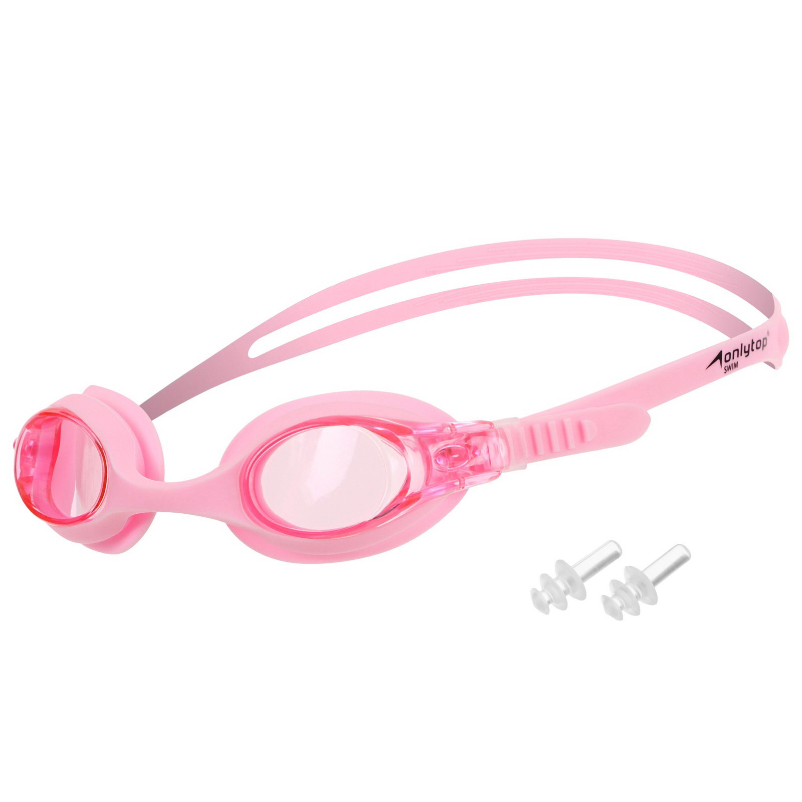 Очки для плавания детские беруши, цвет розовый, ONLYTOP, Китай