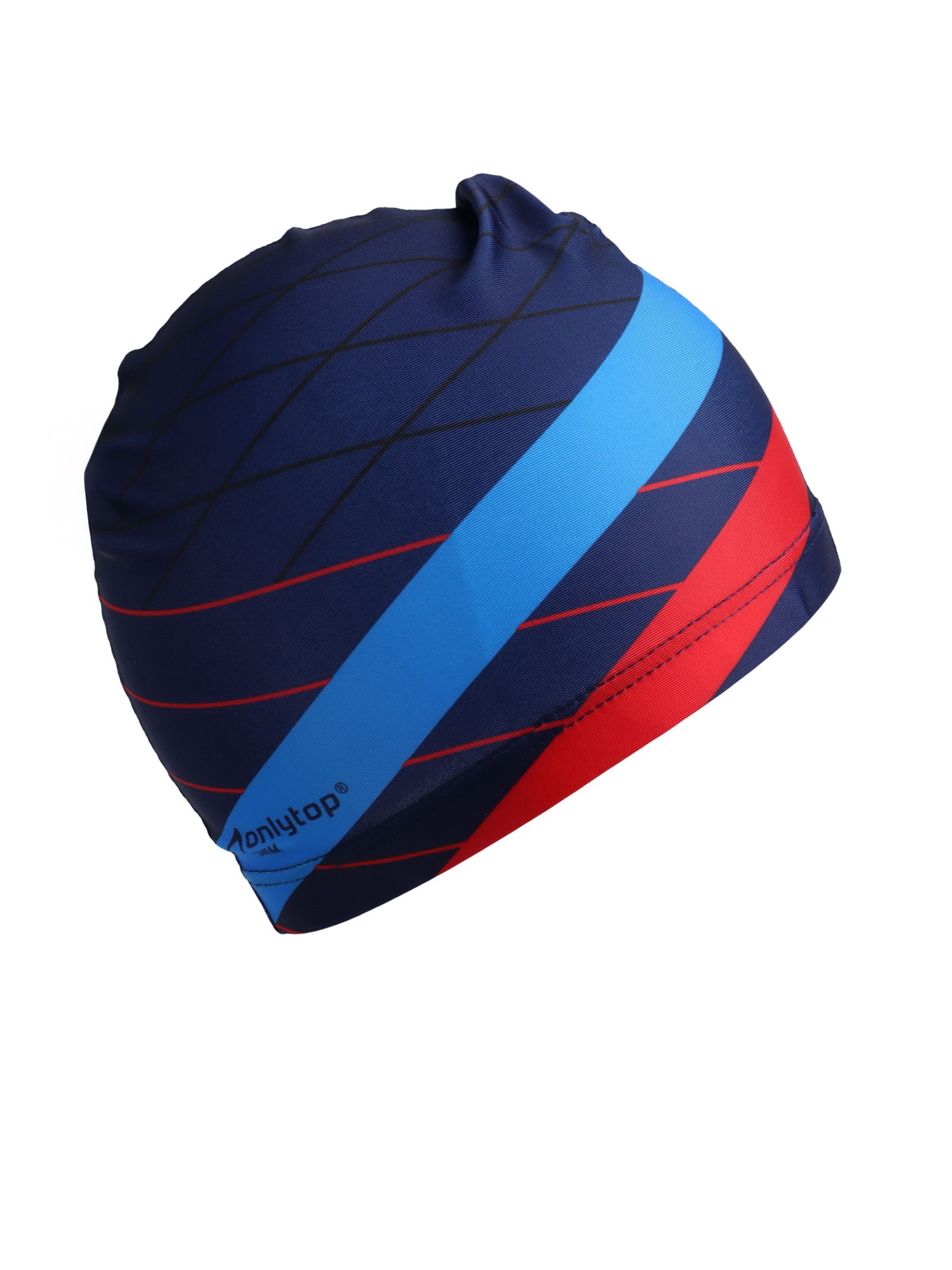 Шапочка для плавания взрослая "Полосы", тканевая, обхват 54-60 см, 0.2x10x17 см., ONLYTOP, Китай