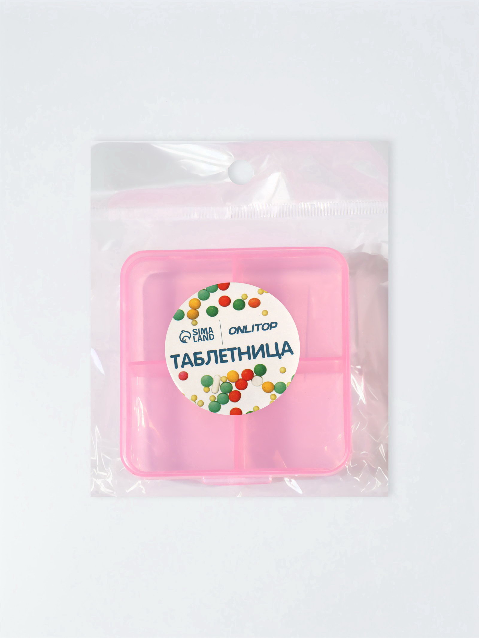 Таблетница, 6.5 x 6.5 x 2.5 см, 4 секции, цвет розовый, 6.5x6.5x2.5 см., ONLITOP, Китай