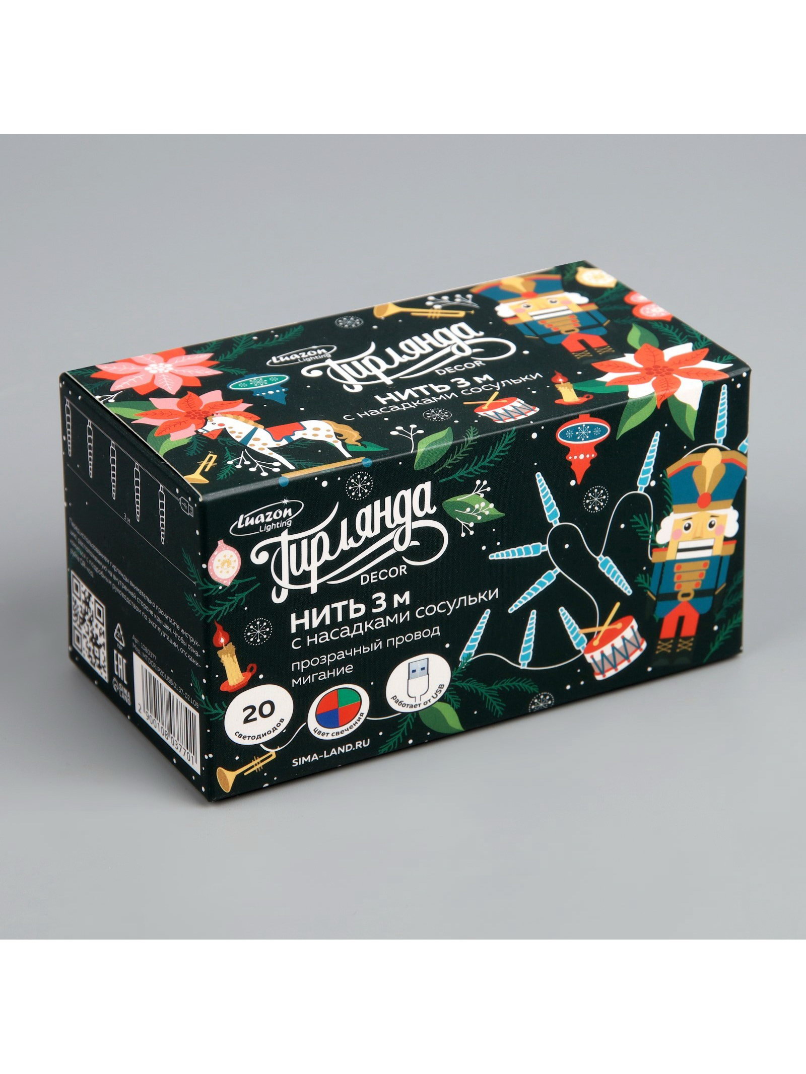 Гирлянда "Нить" 3 м с насадками "Сосульки 7.5 см", IP20, прозрачная нить, 20 LED, свечение мульти, Luazon Lighting, Китай