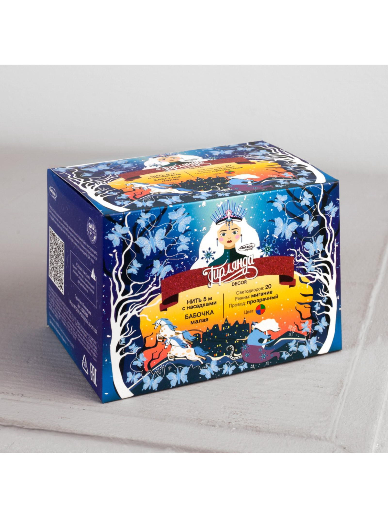 Размер упаковки: 8 x 8 x 11 см. Цвет нити гирлянды: Прозрачный Длина, м: 5 Применение: Внутреннее Вид лампы: Светодиодная Насадки: Да Вид гирлянды: Гирлянда-нить Режим работы: Мигание Тип подключения: Шнур питания Количество режимов: 1 Наличие блока питания: Нет Материал насадок: Пластик tnved: 9405310000 Гарантийный срок, мес.: 12 Количество ламп: 20 Материал нити: ПВХ Необходимая комплектация: Не нужна Вид насадки: Бабочки Цвет свечения: RG/RB Степень защиты: IP20 Тематика праздника: Новый год Температурный режим: От -10 до +35 ℃ Тип питания: От сети 220 В