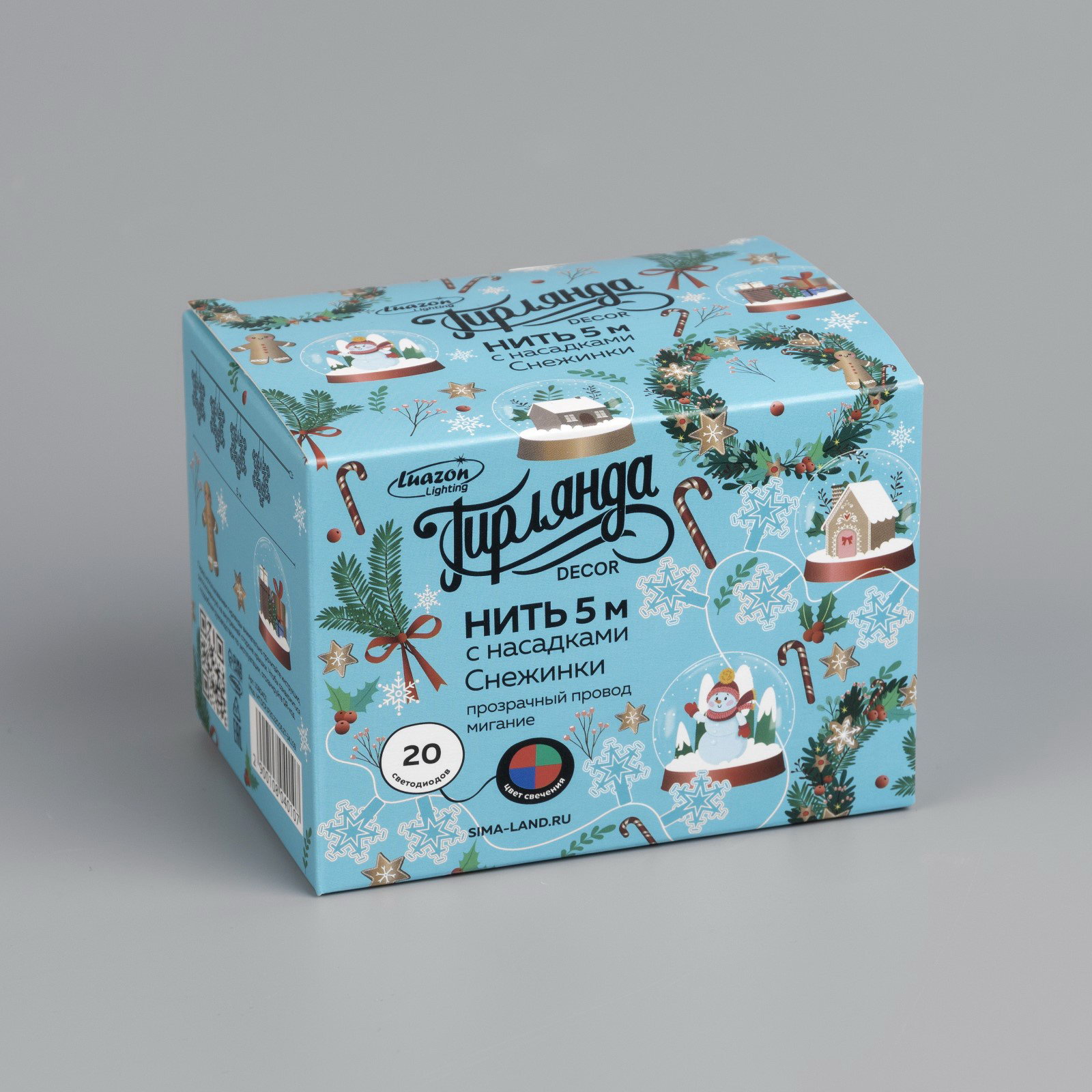 Гирлянда "Нить" 5 м с насадками "Снежинки", IP20, прозрачная нить, 20 LED, свечение мульти, Luazon Lighting, Китай