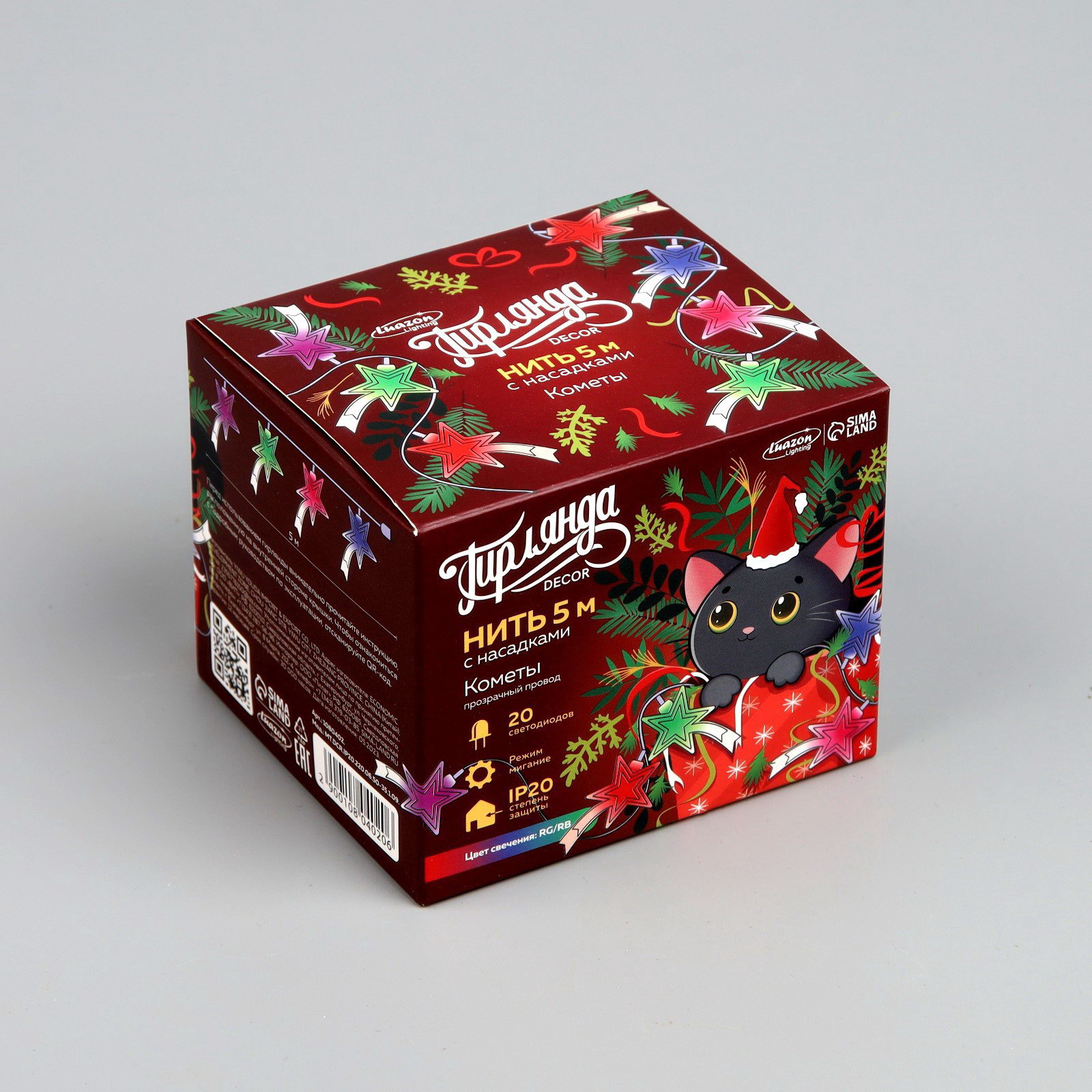 Гирлянда "Нить" 5 м с насадками "Комета", IP20, прозрачная нить, 20 LED, свечение мульти, Luazon Lighting, Китай