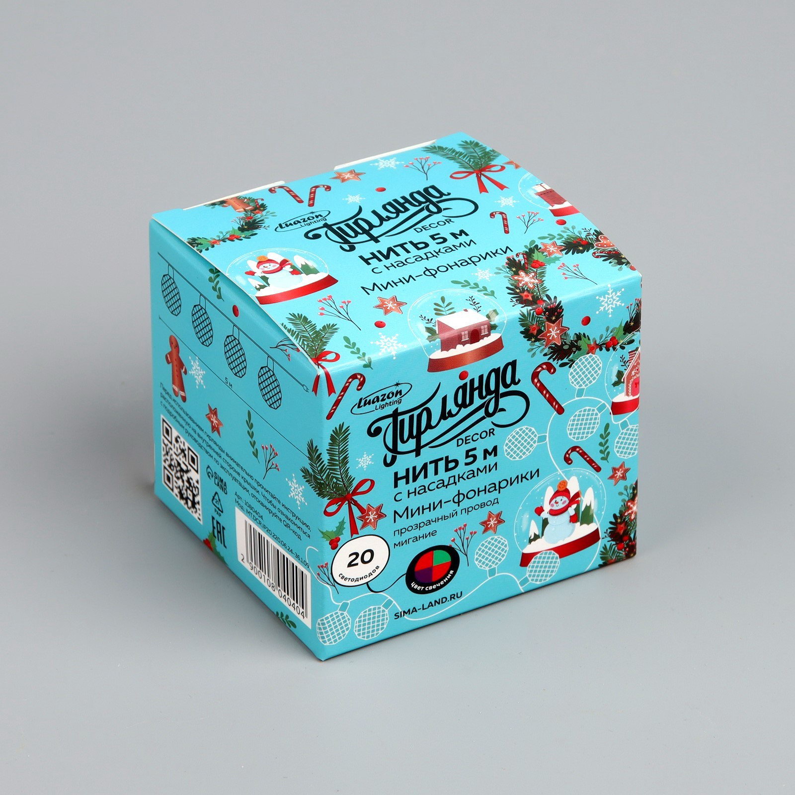 Гирлянда "Нить" 5 м с насадками "Мини фонарик", IP20, прозрачная нить, 20 LED, свечение мульти, 6x8.5x7 см., Luazon Lighting, Китай