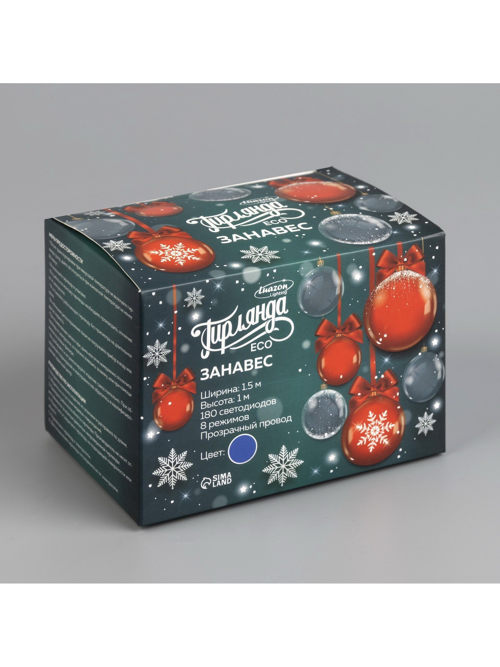 Гирлянда "Занавес" 1.5x1 м, IP20, прозрачная нить, 180 LED, свечение синее, 8 режимов, 220 В, Luazon Lighting, Китай