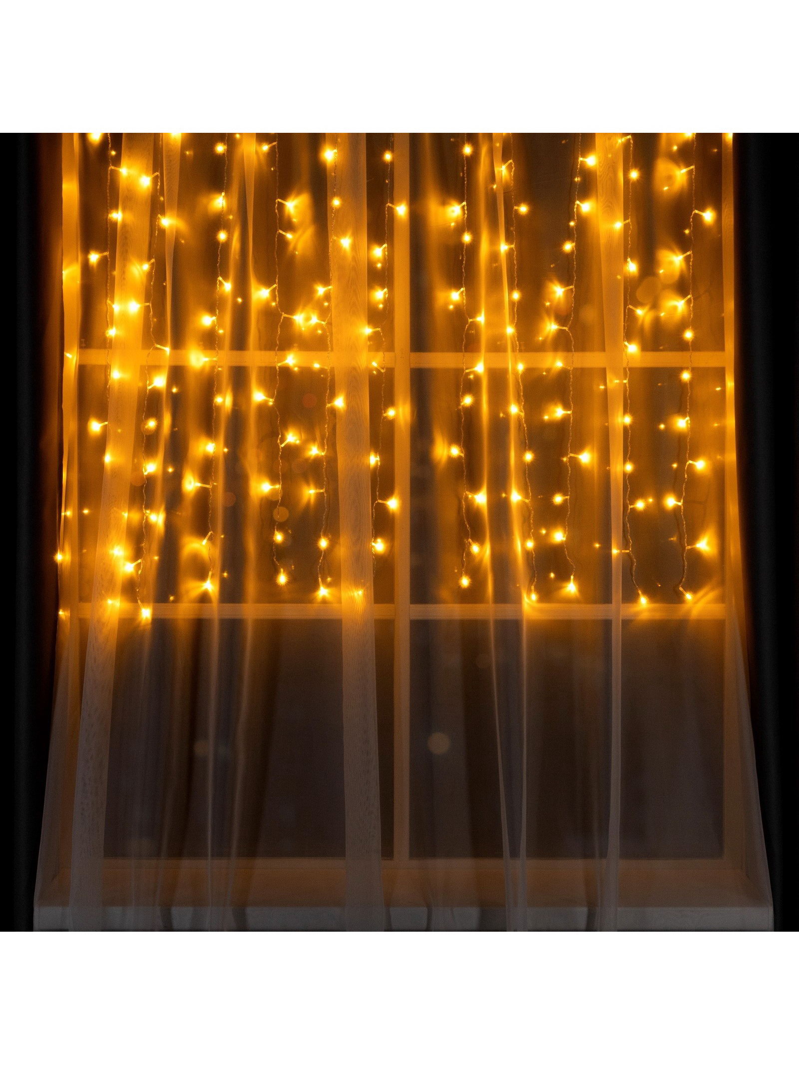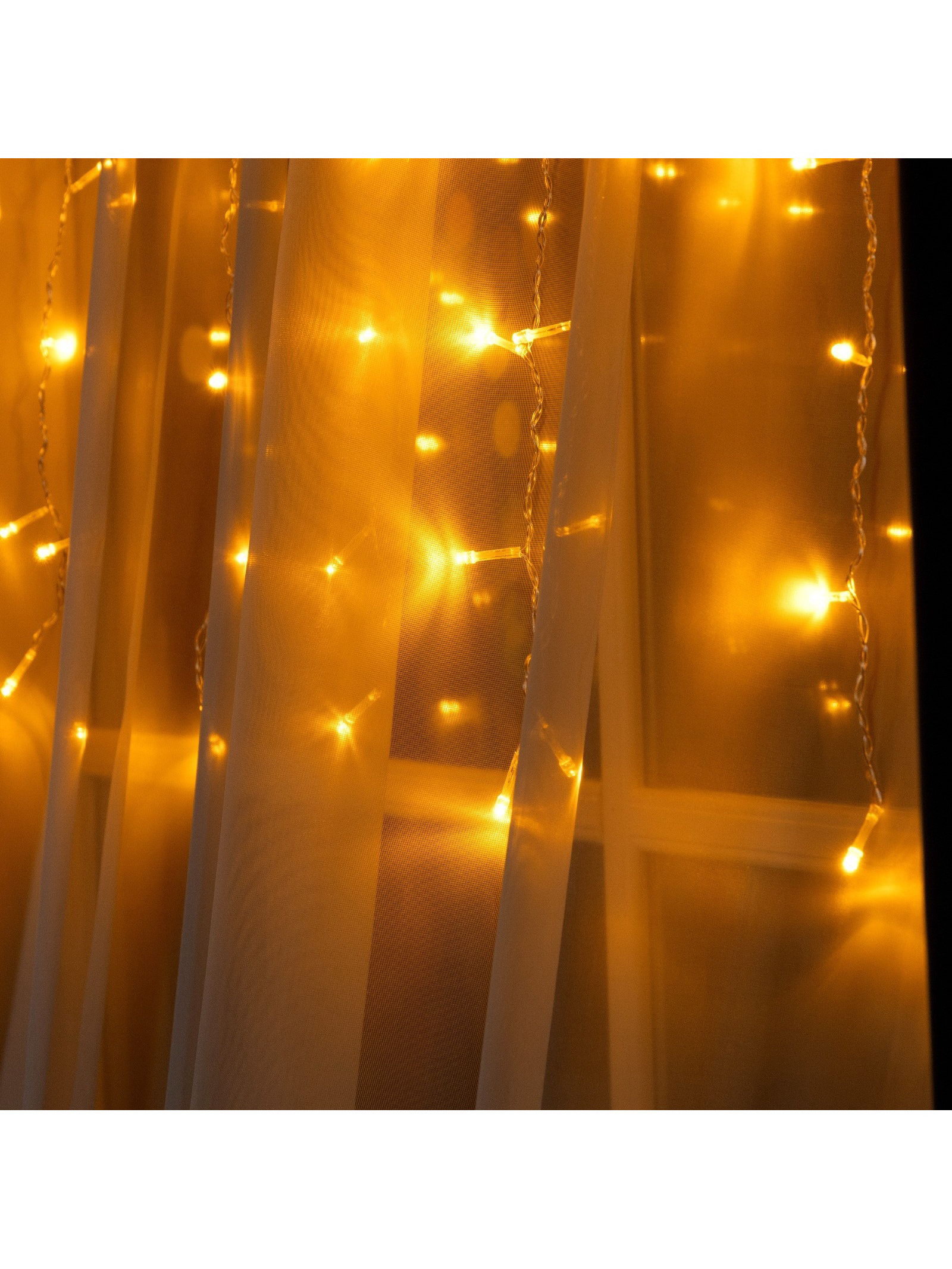 Гирлянда "Занавес" 1.5 x 1 м, IP20, прозрачная нить, 180 LED, свечение жёлтое, 8 режимов, 220 В, Luazon Lighting, Китай