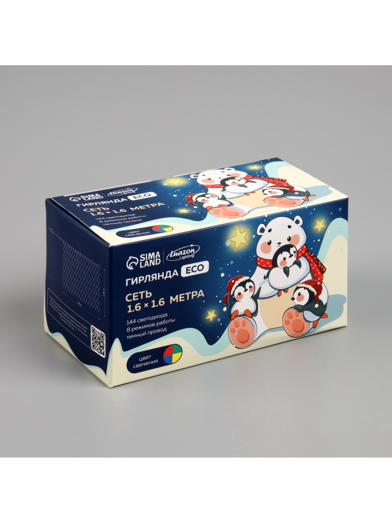 Размер упаковки: 7 x 6.5 x 12.5 см. Применение: Внутреннее Вид лампы: Светодиодная Материал нити: ПВХ Цвет нити гирлянды: Тёмный Насадки: Нет Размер, м: 1.6 x 1.6 Вид гирлянды: Сетка Наличие блока питания: Нет Цвет свечения: Мульти Тип подключения: С контроллером Количество режимов: 8 Режим работы: Задаётся контроллером tnved: 9405310000 Гарантийный срок, мес.: 12 Количество ламп: 144 Необходимая комплектация: Не нужна Вид насадки: Без насадок Высота, м: 1.6 Ширина, м: 1.6 Степень защиты: IP20 Тематика праздника: Новый год Температурный режим: От -10 до +35 ℃ Тип питания: От сети 220 В