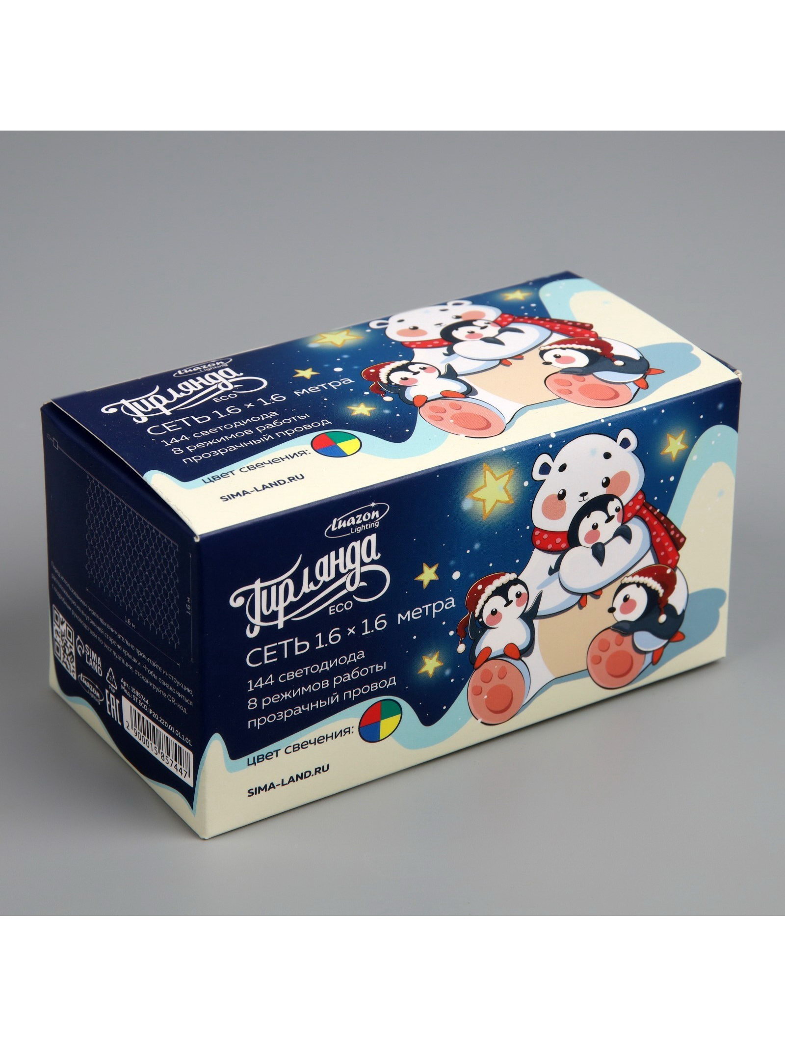 Гирлянда "Сеть" 1.6x1.6 м, IP20, прозрачная нить, 144 LED, 8 режимов, 220 В, свечение мульти, 6.5x12x6.5 см., Luazon Lighting, Китай