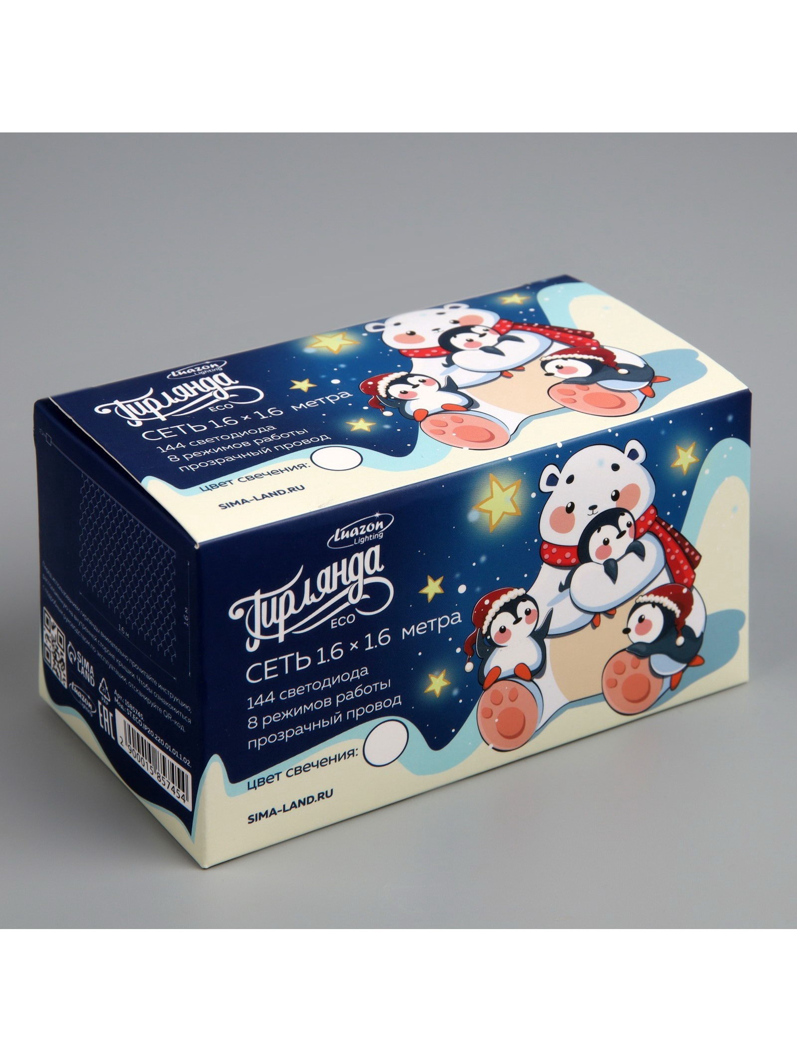 Гирлянда "Сеть" 1.6x1.6 м, IP20, прозрачная нить, 144 LED, 8 режимов, 220 В, свечение белое, Luazon Lighting, Китай