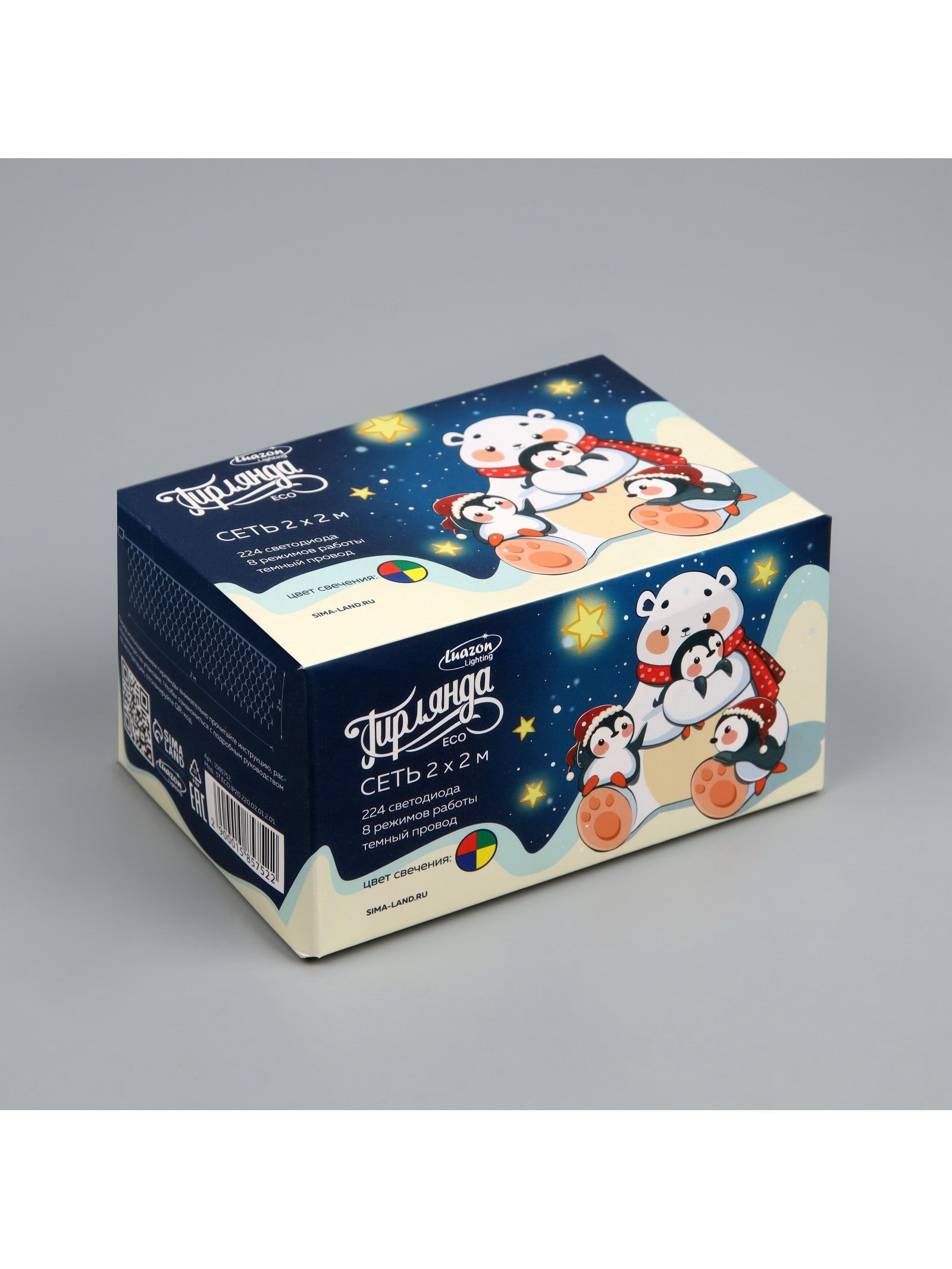 Гирлянда "Сеть" 2x2 м, IP20, тёмная нить, 224 LED, 8 режимов, 220 В, свечение мульти, Luazon Lighting, Китай