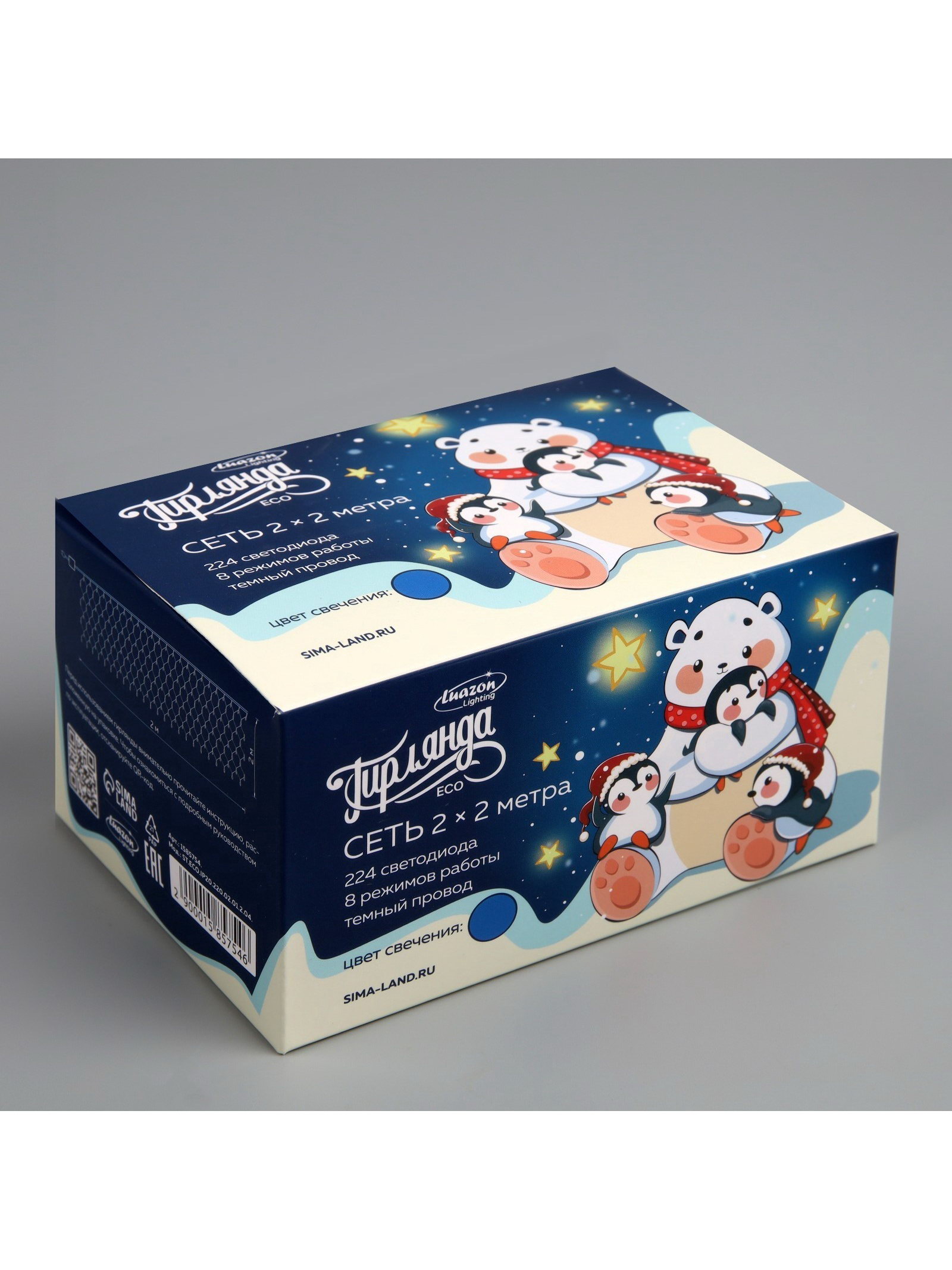 Размер упаковки: 10 x 7.5 x 13.5 см. Применение: Внутреннее Материал нити: ПВХ Вид лампы: Светодиодная Цвет нити гирлянды: Тёмный Насадки: Нет Размер, м: 2 x 2 Вид гирлянды: Сетка Наличие блока питания: Нет Цвет свечения: Синий Тип подключения: С контроллером Количество режимов: 8 Режим работы: Задаётся контроллером tnved: 9405310000 Гарантийный срок, мес.: 12 Количество ламп: 224 Необходимая комплектация: Не нужна Вид насадки: Без насадок Ширина, м: 2 Высота, м: 2 Степень защиты: IP20 Тематика праздника: Новый год Температурный режим: От -10 до +35 ℃ Тип питания: От сети 220 В