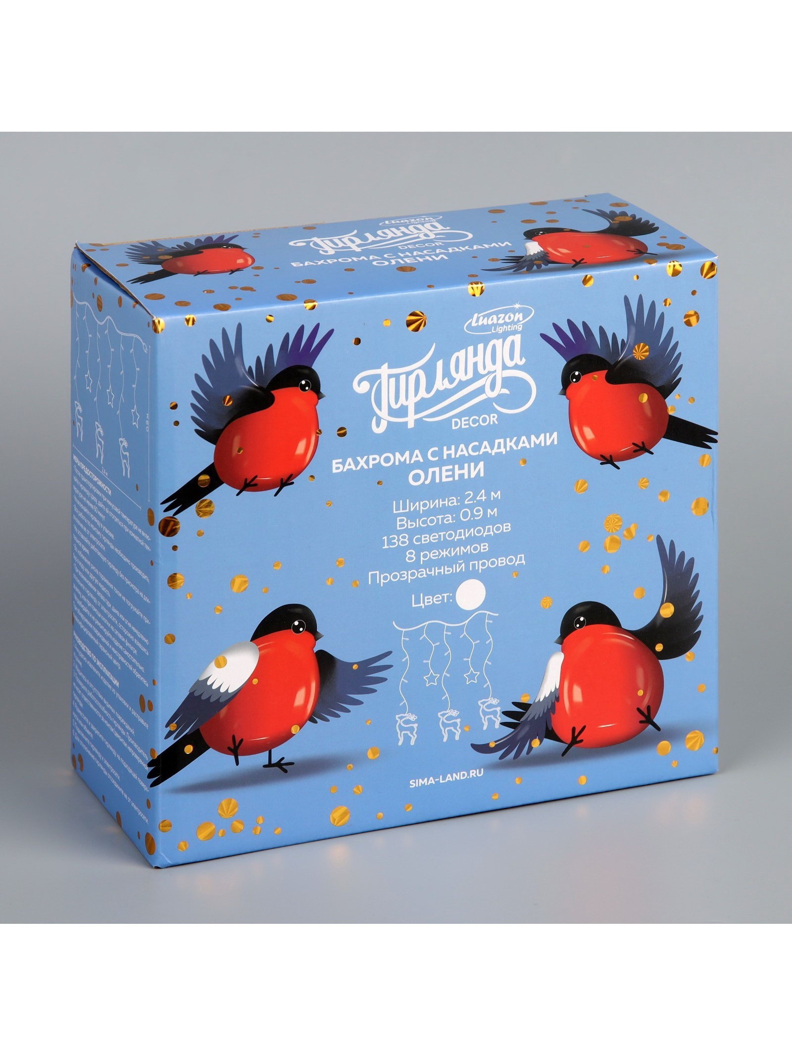 Гирлянда "Бахрома" 2.4x0.9 м с насадками "Олень", IP20, прозрачная нить, 138 LED, свечение белое, 8 режимов, 220 В, 10x20x20 см., Luazon Lighting, Китай