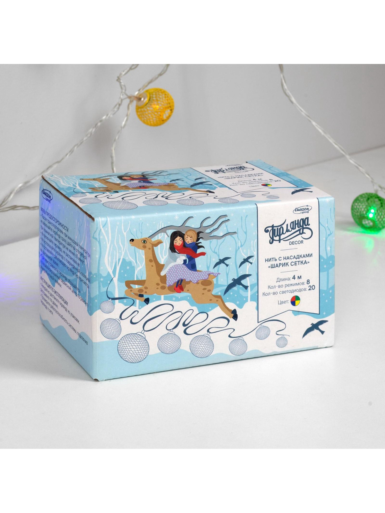 Гирлянда "Нить" 4 м с насадками "Шарик сетка", IP20, прозрачная нить, 20 LED, свечение мульти, 8 режимов, 220 В, Luazon Lighting, Китай