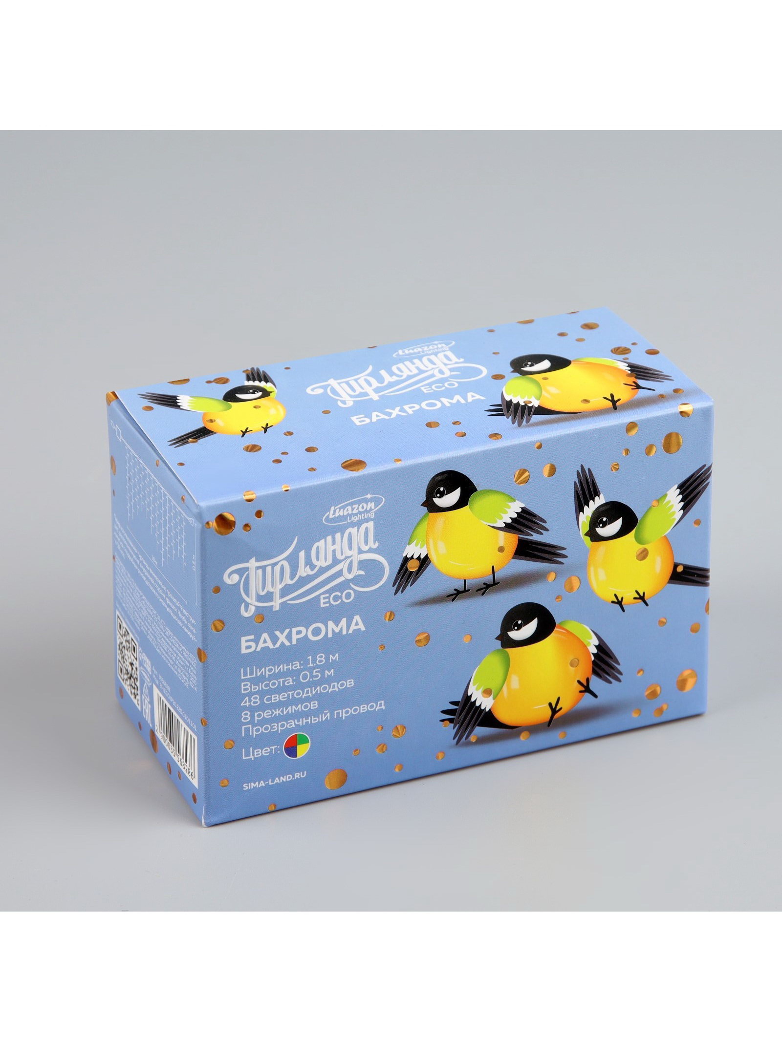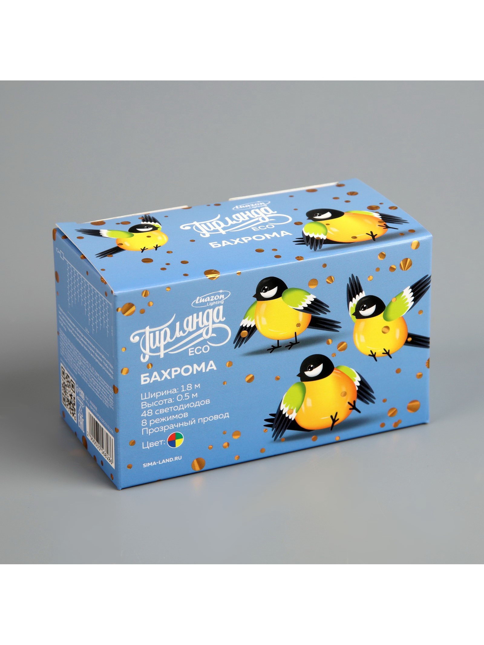 Гирлянда "Бахрома" 1.8 x 0.5 м, IP20, прозрачная нить, 48 LED, свечение мульти, 8 режимов, 220 В, Luazon Lighting, Китай