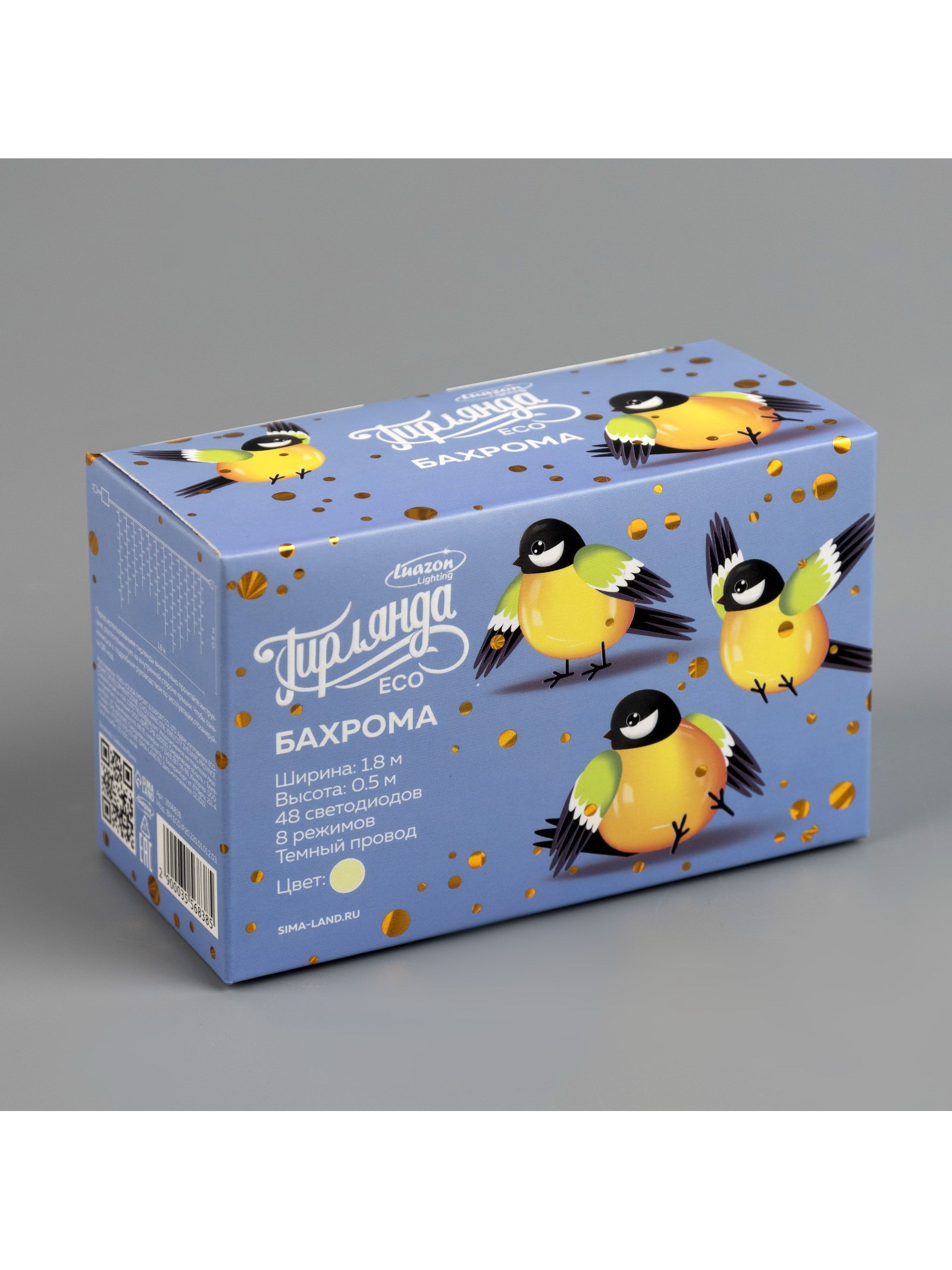 Гирлянда "Бахрома" 1.8 x 0.5 м, IP20, тёмная нить, 48 LED, свечение тёплое белое, 8 режимов, 220 В, Luazon Lighting, Китай