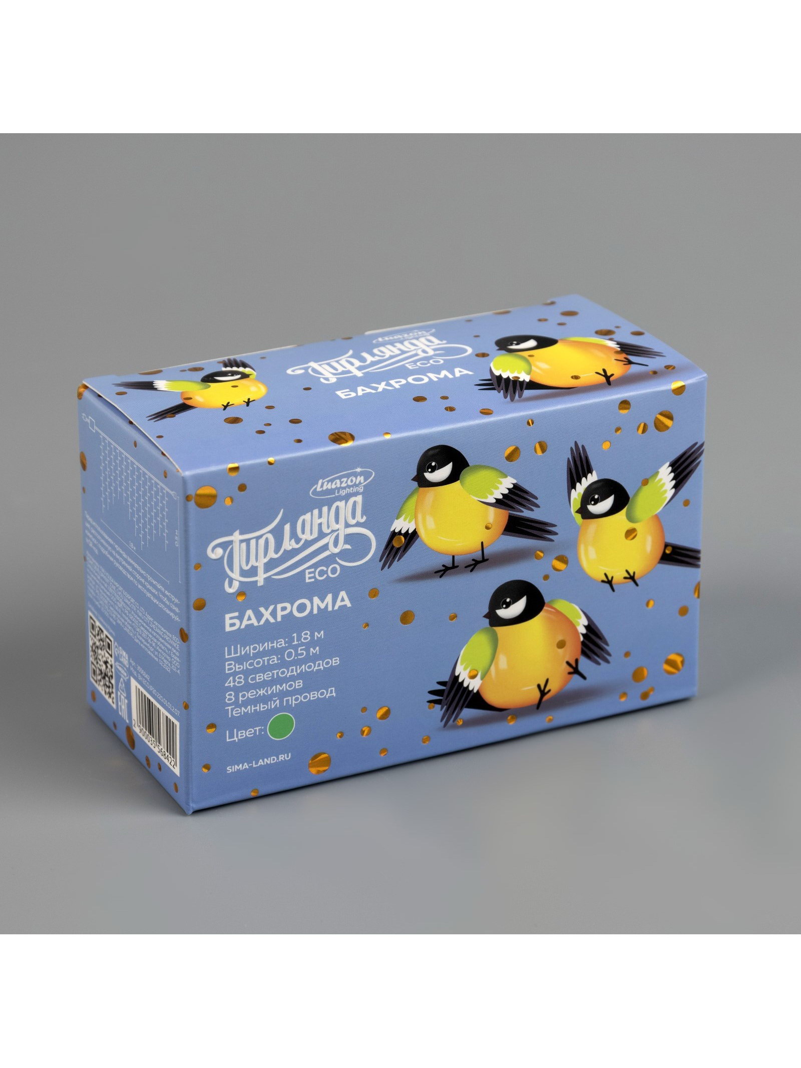 Гирлянда "Бахрома" 1.8 x 0.5 м, IP20, тёмная нить, 48 LED, свечение зелёное, 8 режимов, 220 В, Luazon Lighting, Китай