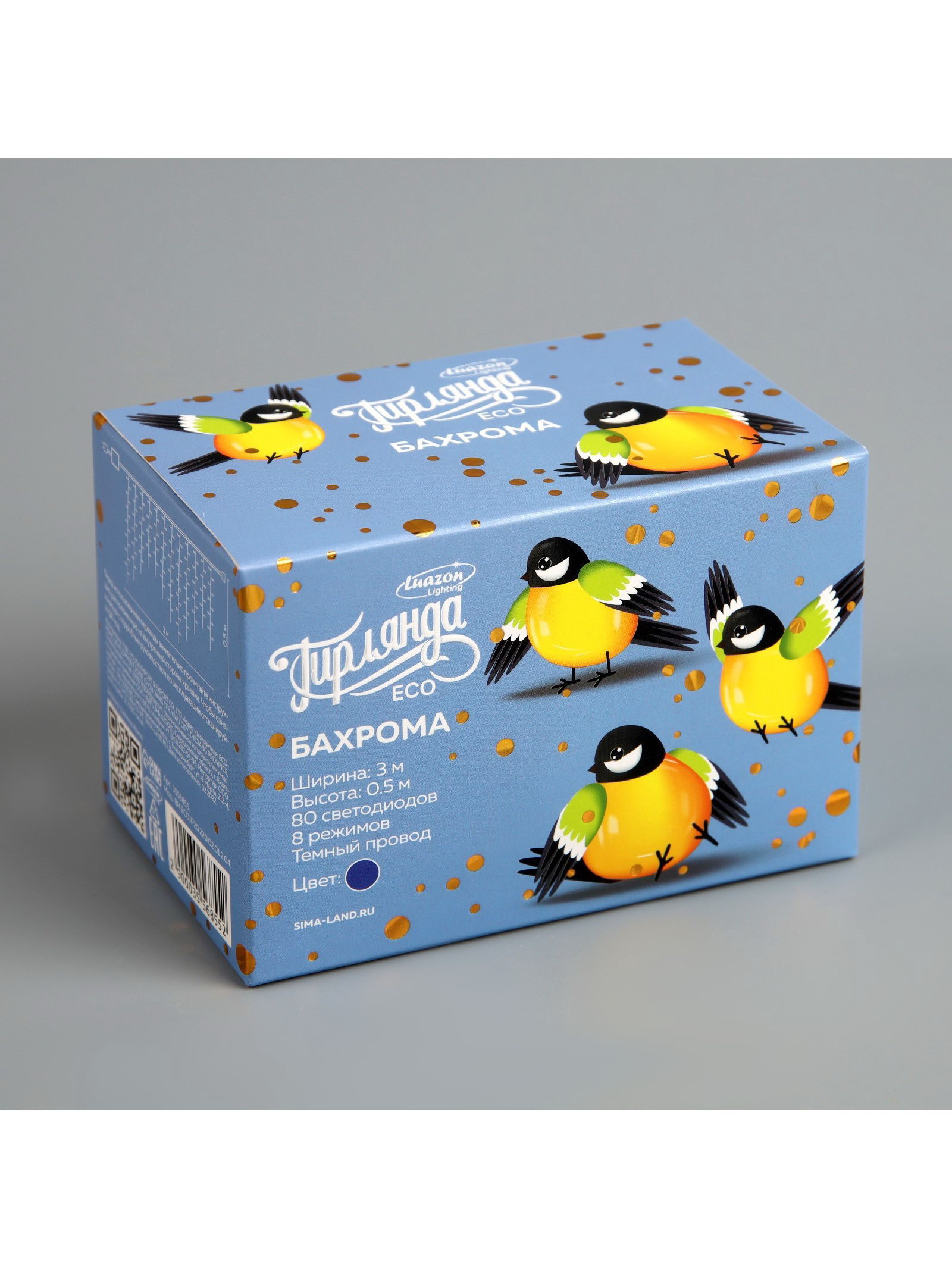 Гирлянда "Бахрома" 3 x 0.5 м, IP20, тёмная нить, 80 LED, свечение синее, 8 режимов, 220 В, Luazon Lighting, Китай