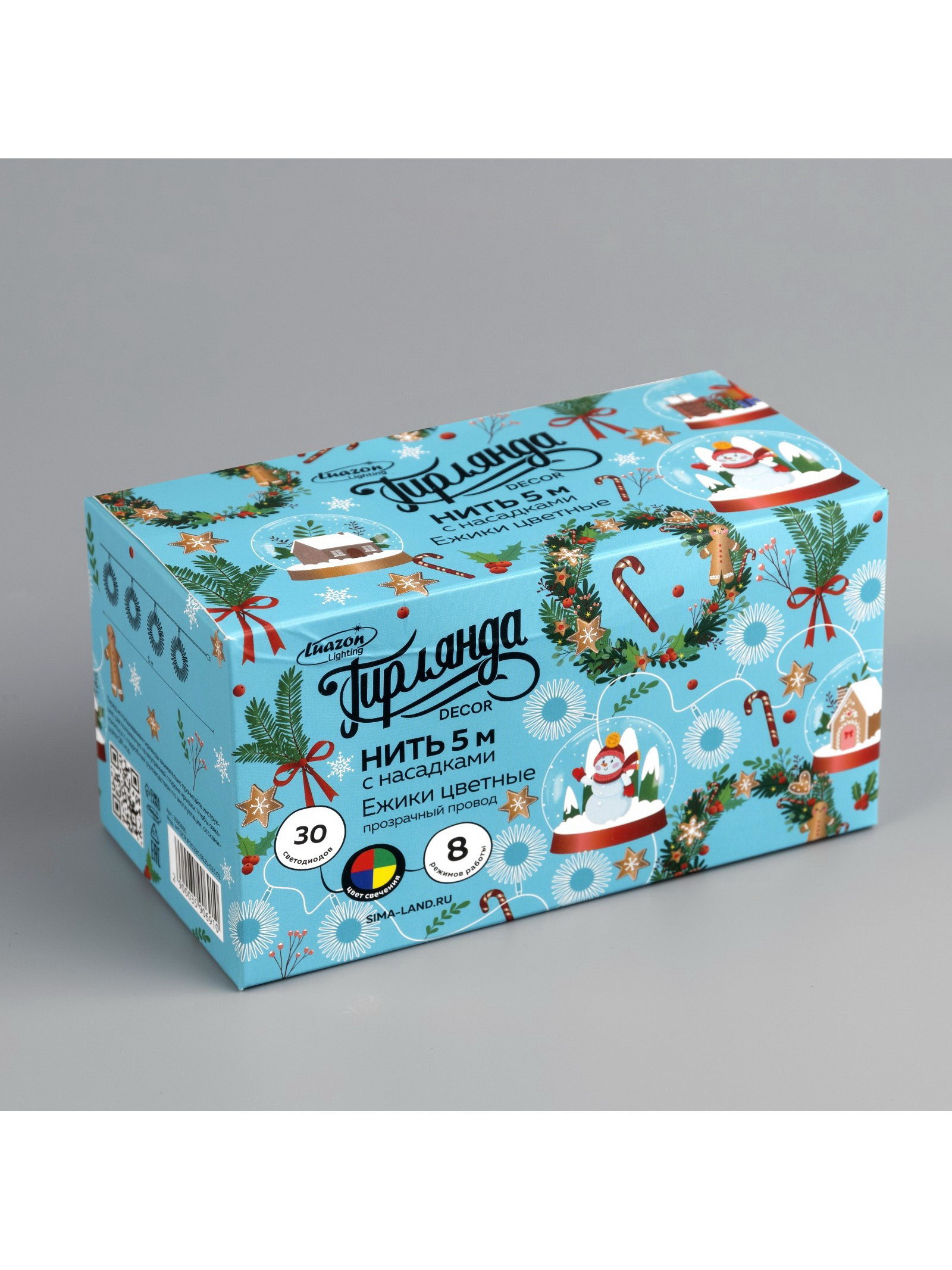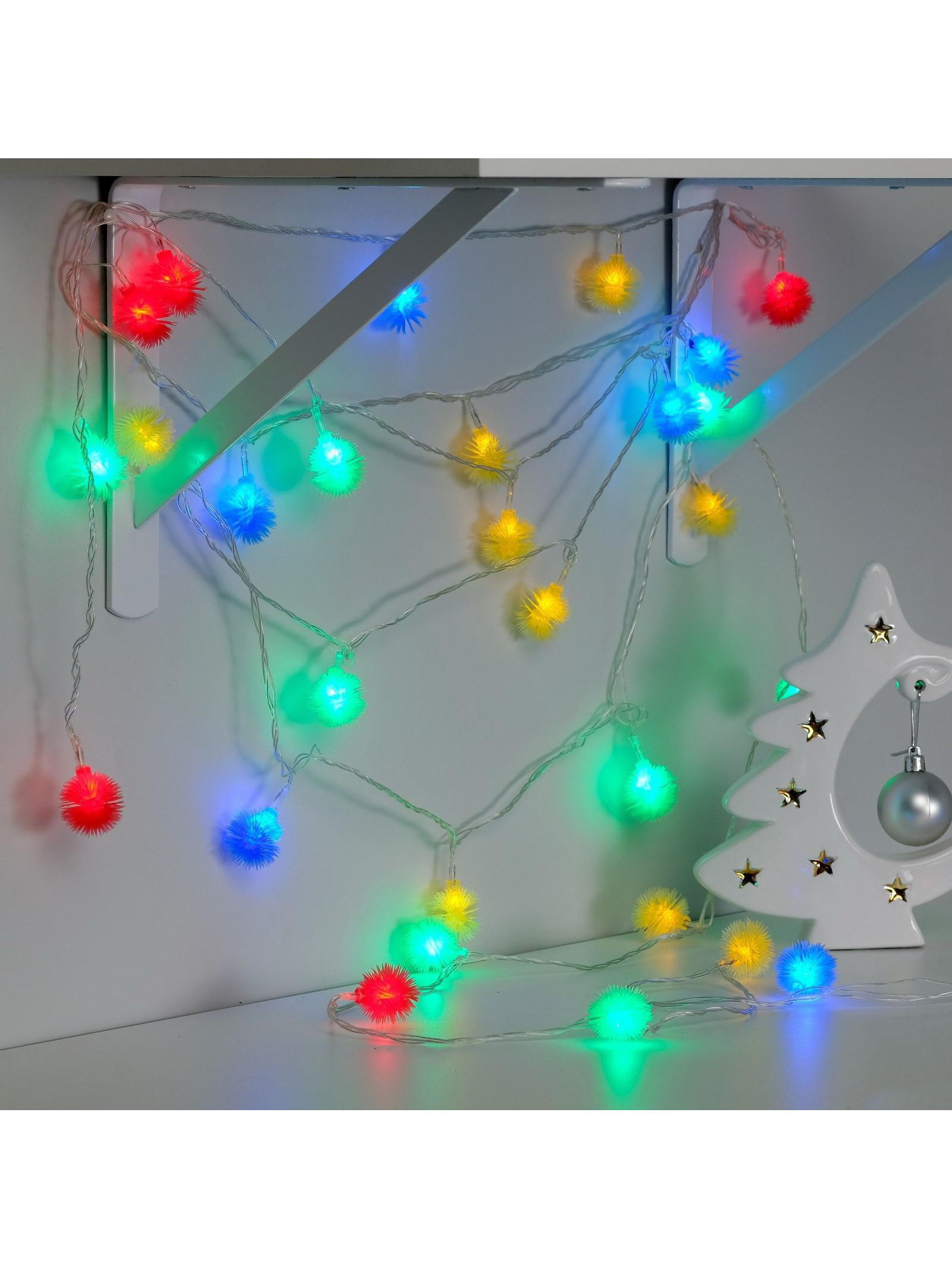Гирлянда "Нить" 5 м с насадками "Ёжики цветные", IP20, прозрачная нить, 30 LED, свечение мульти, 8 режимов, 220 В, Luazon Lighting, Китай