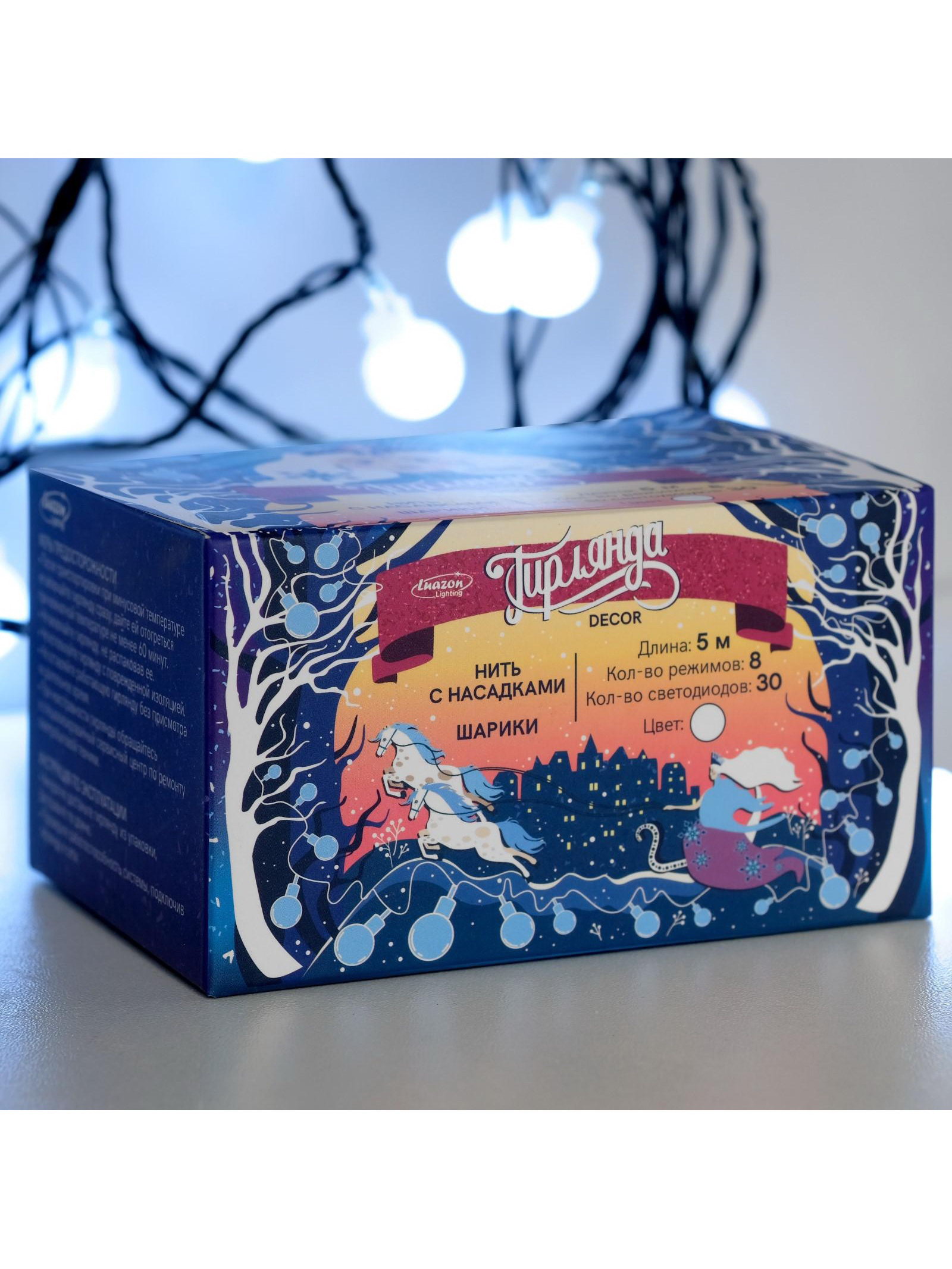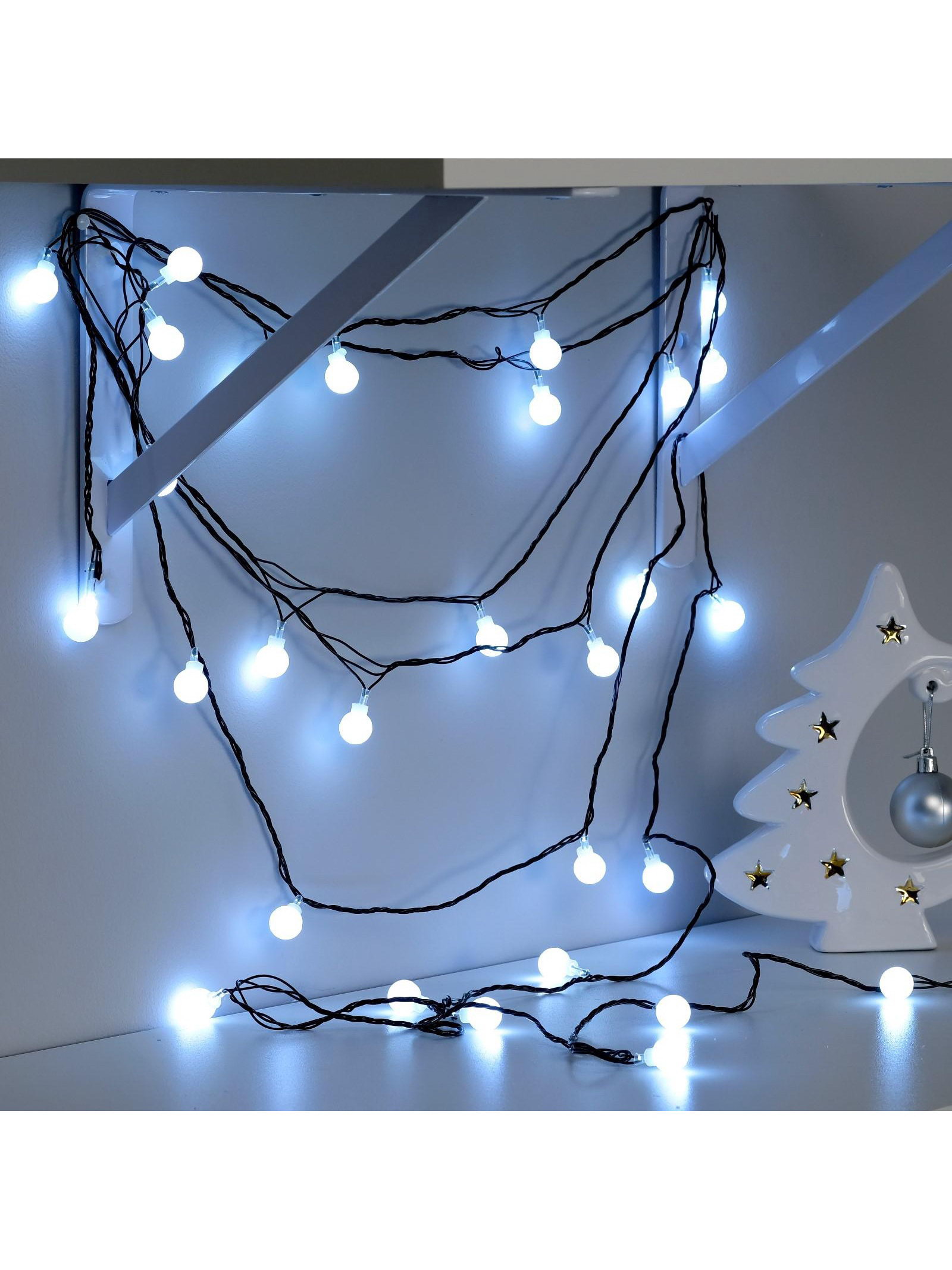 Размер упаковки: 7 x 8 x 10 см. Материал насадок: Пластик tnved: 9405310000 Гарантийный срок, мес.: 12 Вид лампы: Светодиодная Цвет нити гирлянды: Тёмный Материал нити: ПВХ Тип подключения: С контроллером Цвет свечения: Белый Вид гирлянды: Гирлянда-нить Режим работы: Задаётся контроллером Применение: Внутреннее Длина, м: 5 Количество режимов: 8 Наличие блока питания: Нет Насадки: Да Количество ламп: 30 Необходимая комплектация: Не нужна Вид насадки: Шарики Степень защиты: IP20 Тематика праздника: Новый год Температурный режим: От -10 до +35 ℃ Тип питания: От сети 220 В