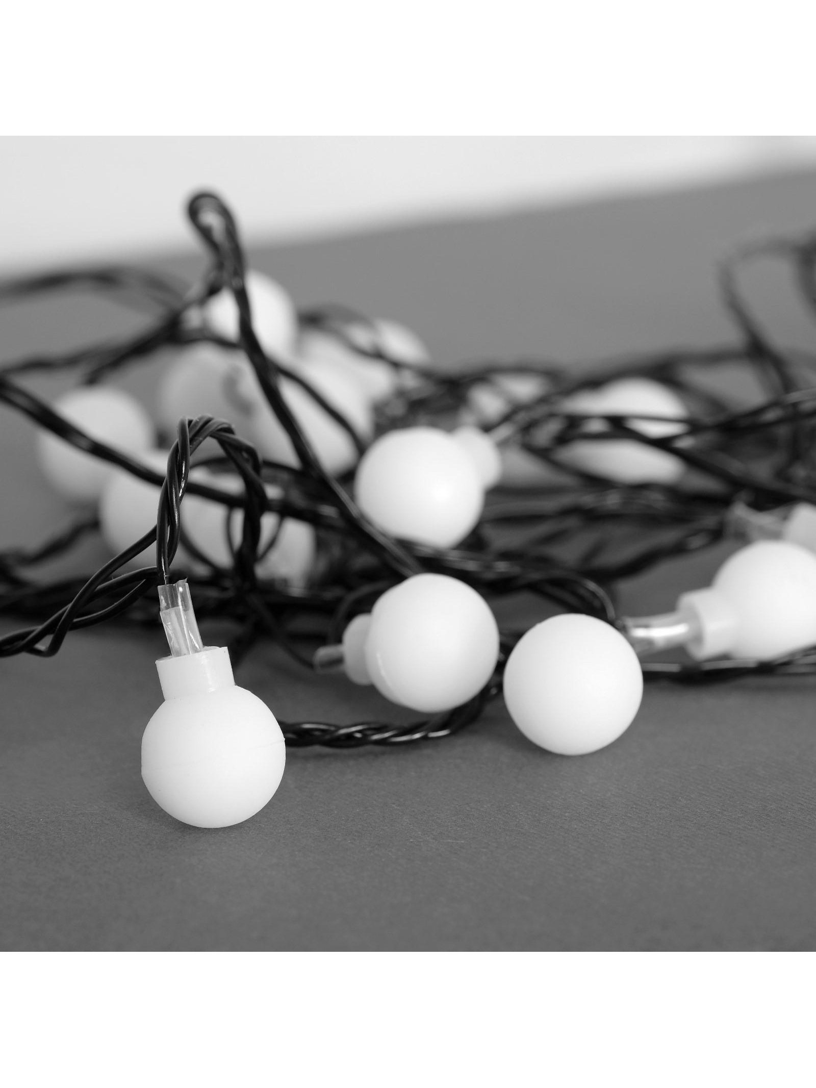 Гирлянда "Нить" 5 м с насадками "Шарики белые", IP20, тёмная нить, 30 LED, свечение белое, 8 режимов, 220 В, 6.5x10x8 см., Luazon Lighting, Китай