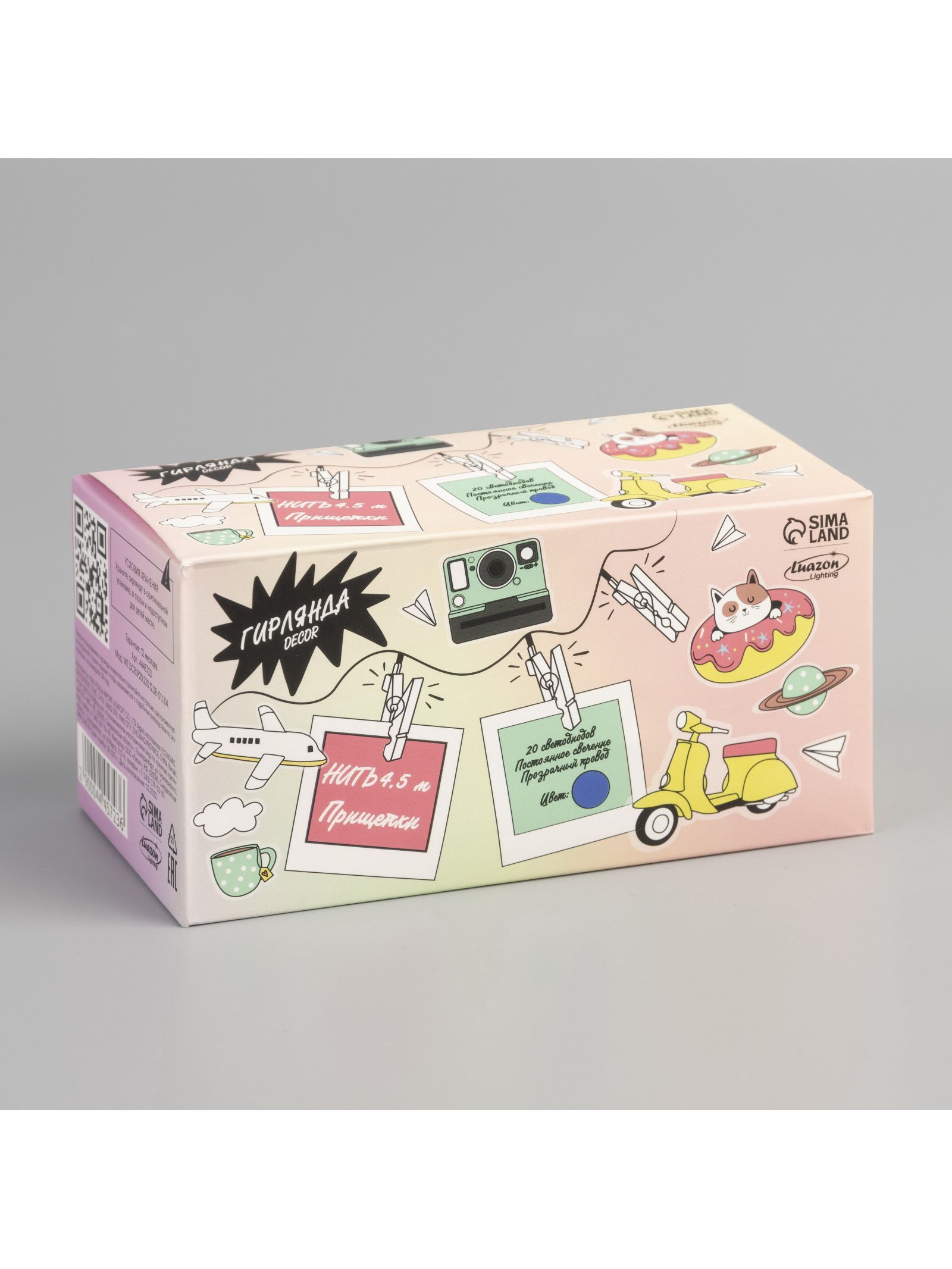 Гирлянда "Нить" 4.5 м с насадками "Прищепки", IP20, прозрачная нить, 20 LED, свечение синее, 220 В, Luazon Lighting, Китай