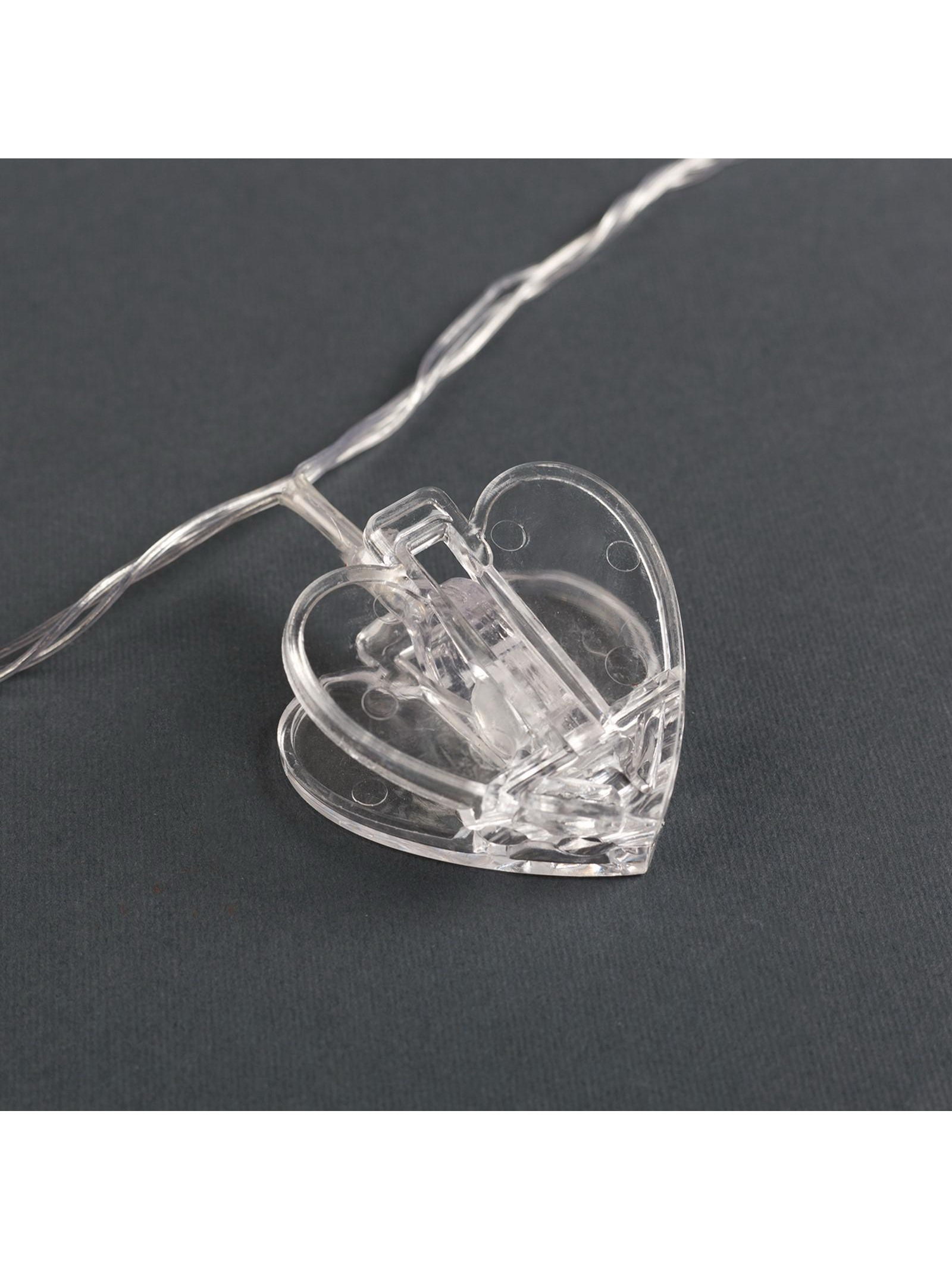 Гирлянда "Нить" 4.5 м с насадками "Прищепки-сердце", IP20, прозрачная нить, 20 LED, свечение красное, 220 В, Luazon Lighting, Китай
