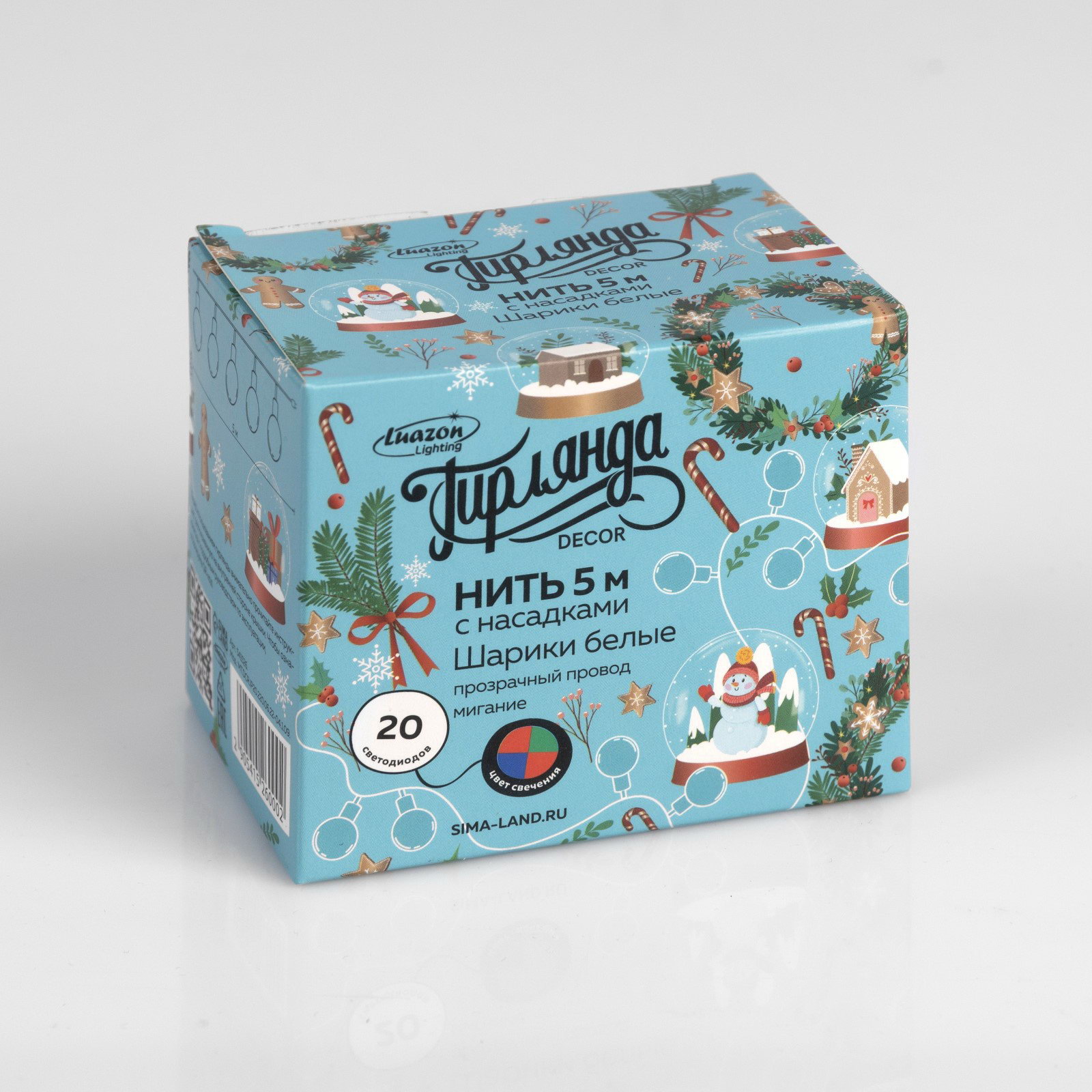 Гирлянда "Нить" 5 м с насадками "Шарики белые", IP20, прозрачная нить, 20 LED, свечение мульти, Luazon Lighting, Китай