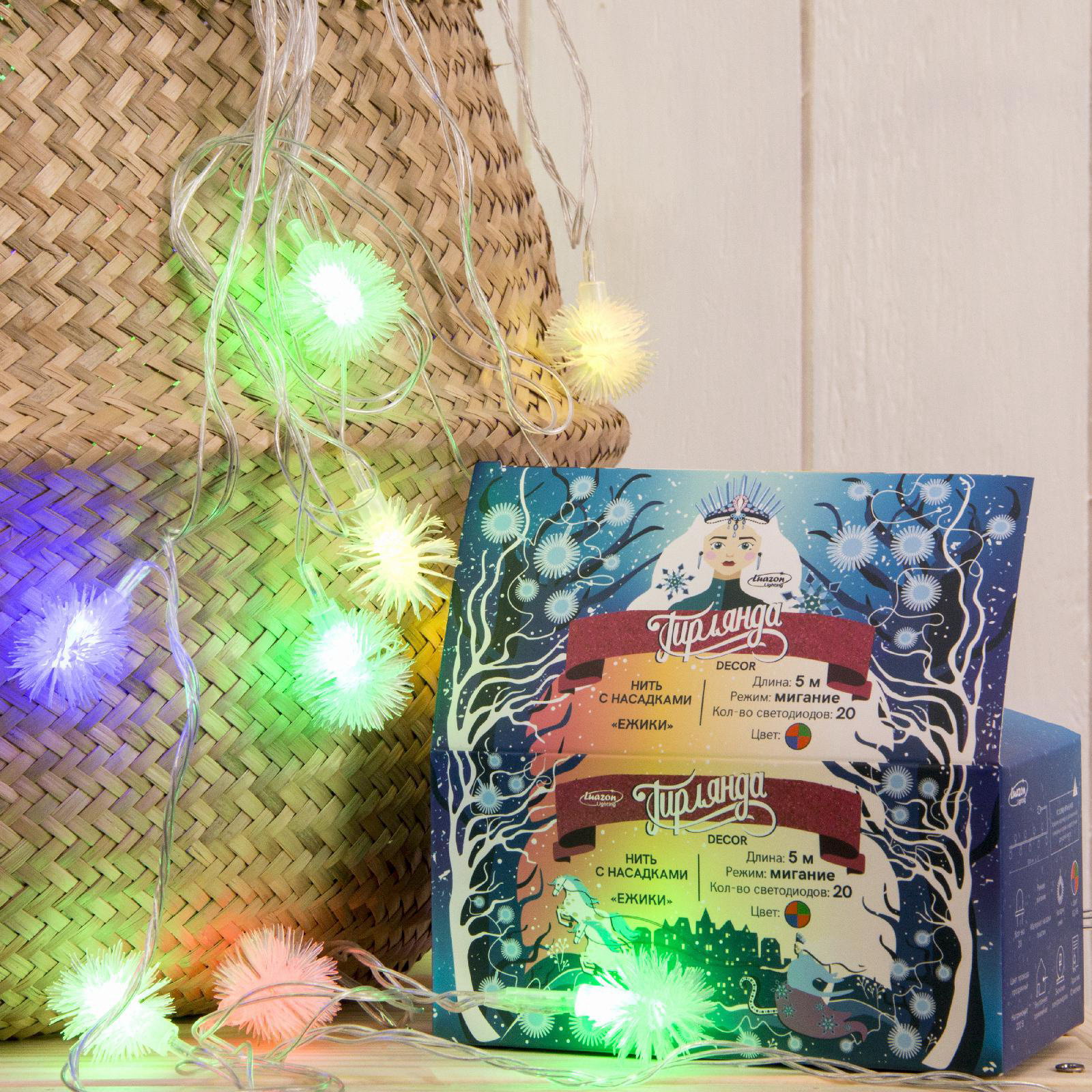 Размер упаковки: 8 x 8 x 11 см. Длина, м: 5 Применение: Внутреннее Вид лампы: Светодиодная Насадки: Да Цвет нити гирлянды: Прозрачный Вид гирлянды: Гирлянда-нить Наличие блока питания: Нет Количество режимов: 1 Режим работы: Мигание Тип подключения: Шнур питания Материал насадок: Пластик Гарантийный срок, мес.: 12 Гарантийный срок, мес.: 12 tnved: 9405310000 Количество ламп: 20 Материал нити: ПВХ Необходимая комплектация: Не нужна Диаметр насадки, мм: 30 Вид насадки: Ёжики Цвет свечения: RG/RB Степень защиты: IP20 Тематика праздника: Новый год Температурный режим: От -10 до +35 ℃ Тип питания: От сети 220 В