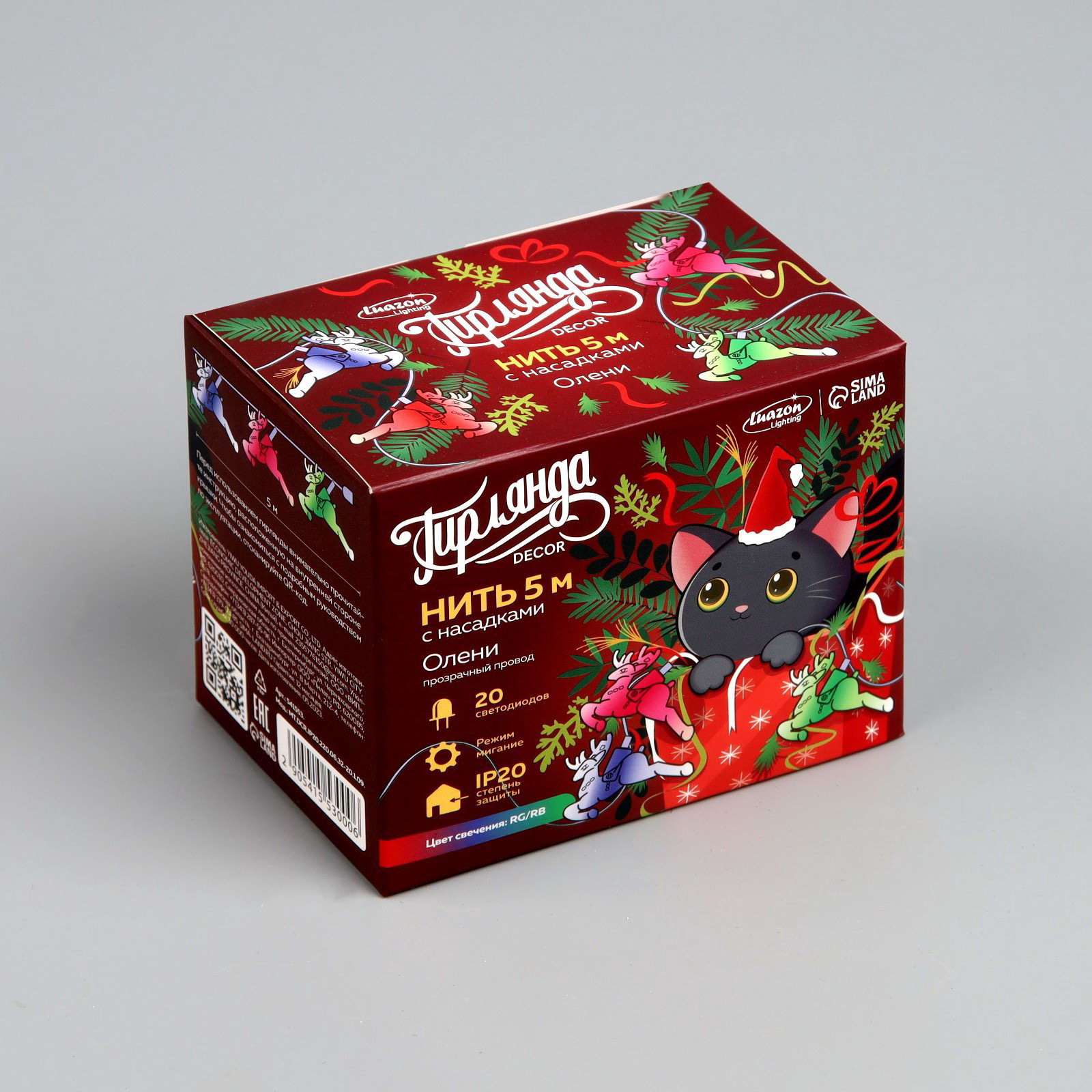 Гирлянда "Нить" 5 м с насадками "Олени", IP20, прозрачная нить, 20 LED, свечение мульти, Luazon Lighting, Китай