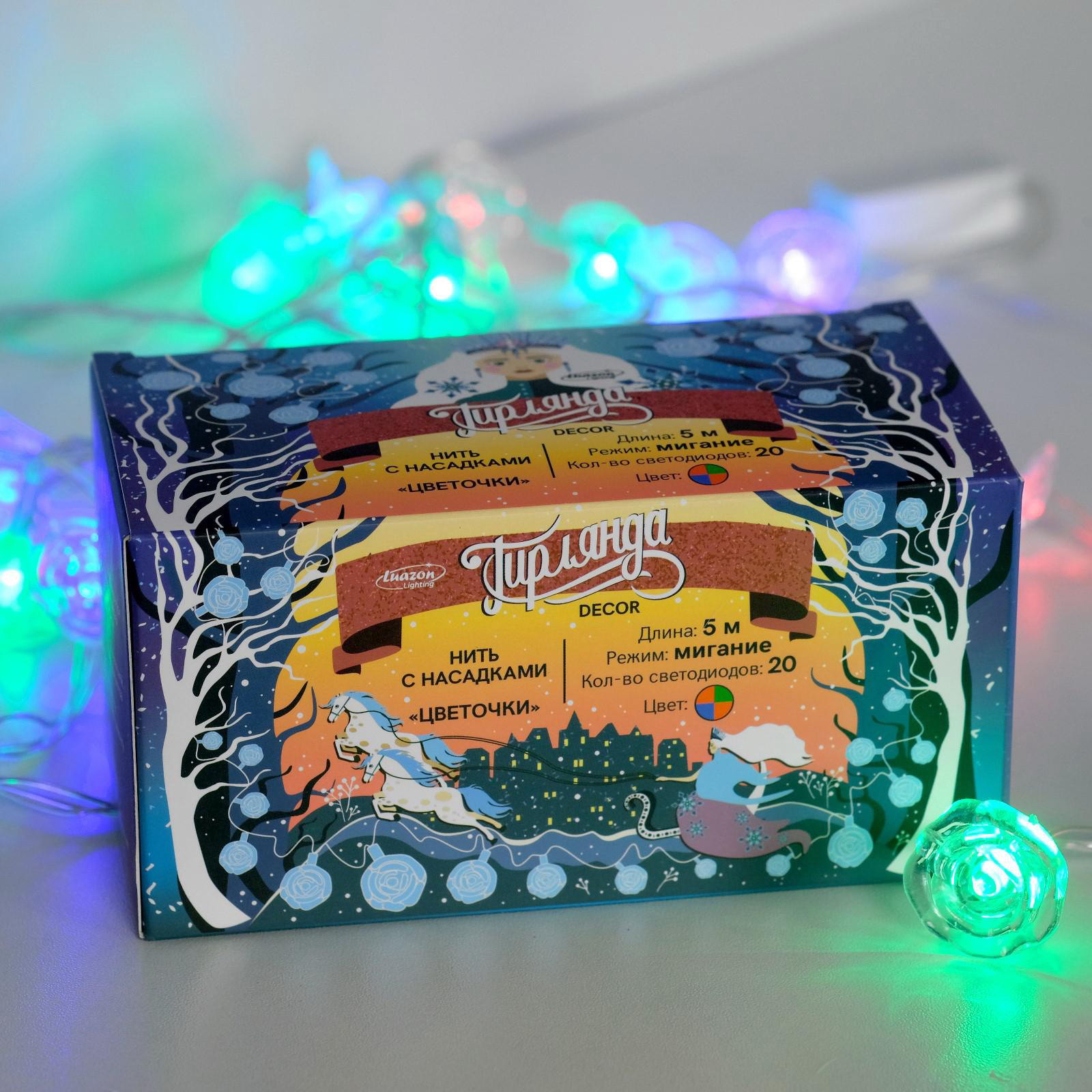 Гирлянда "Нить" 5 м с насадками "Цветочки", IP20, прозрачная нить, 20 LED, свечение мульти, 500x500 см., Luazon Lighting, Китай