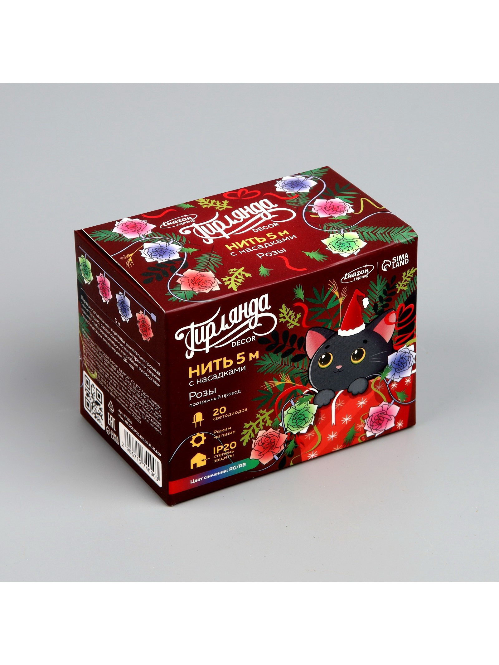 Гирлянда "Нить" 5 м с насадками "Розы большие", IP20, прозрачная нить, 20 LED, свечение мульти, 500x500 см., Luazon Lighting, Китай
