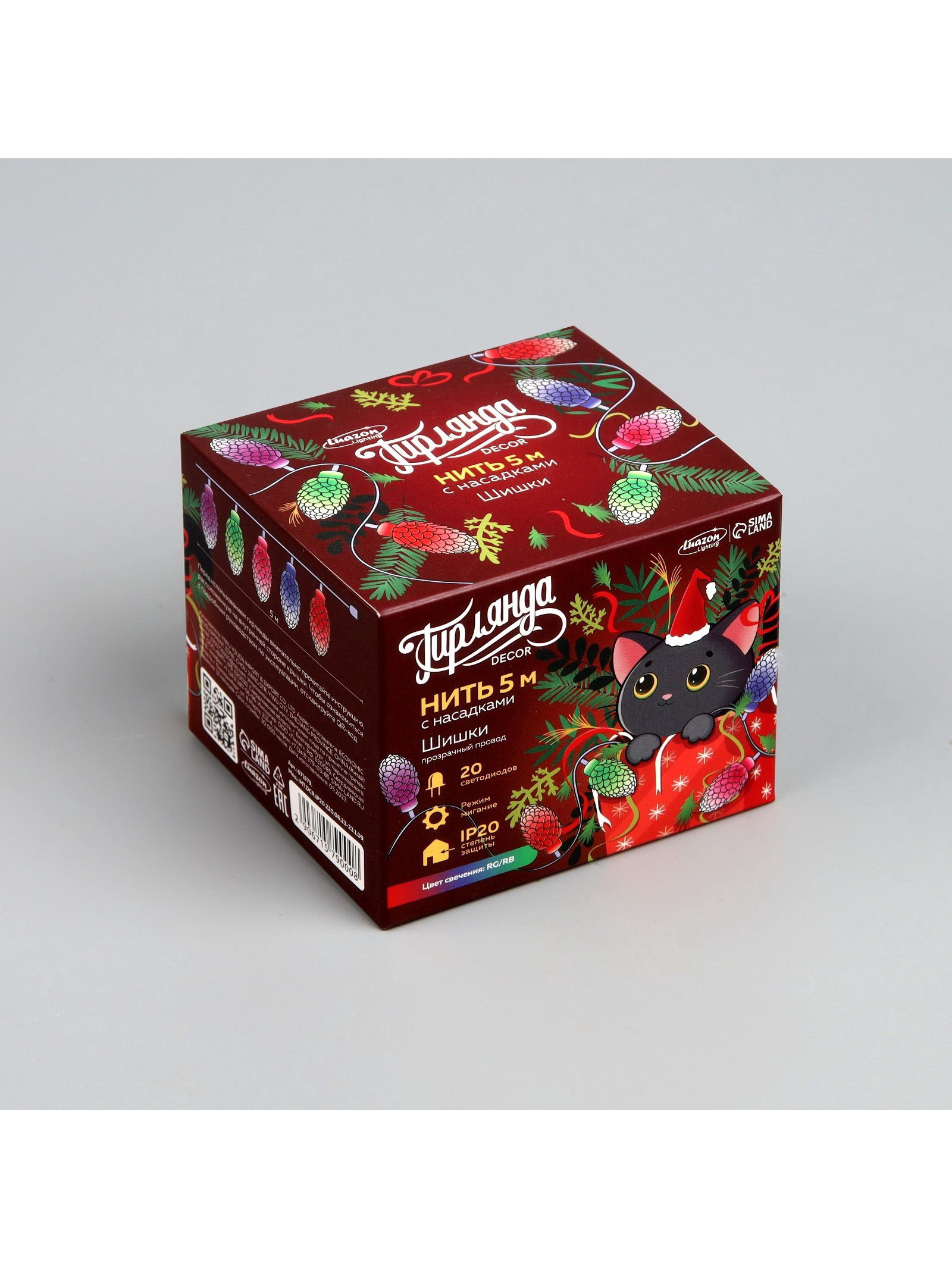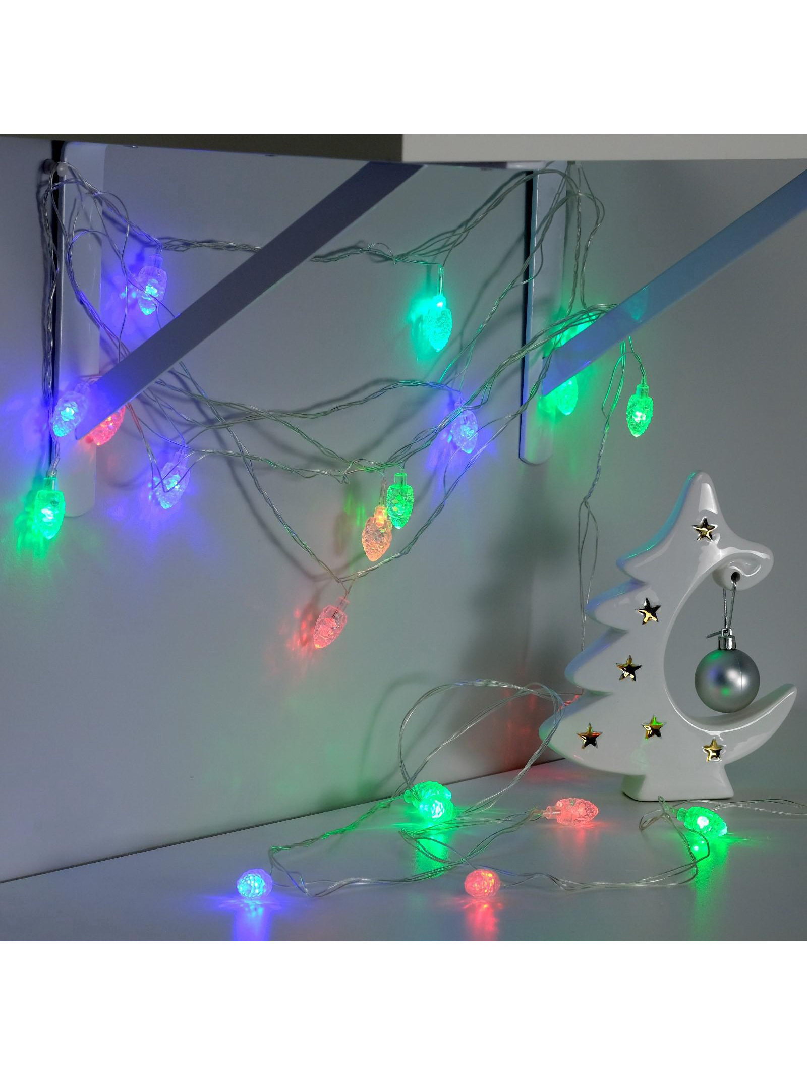 Размер упаковки: 7 x 8 x 7.5 см. Насадки: Да Длина, м: 5 Цвет нити гирлянды: Прозрачный Применение: Внутреннее Вид лампы: Светодиодная Вид гирлянды: Гирлянда-нить Количество режимов: 1 Наличие блока питания: Нет Режим работы: Мигание Тип подключения: Шнур питания Материал насадок: Пластик Гарантийный срок, мес.: 12 tnved: 9405310000 Количество ламп: 20 Материал нити: ПВХ Необходимая комплектация: Не нужна Размер насадки, мм: 33 x 16 Вид насадки: Шишки Цвет свечения: RG/RB Степень защиты: IP20 Тематика праздника: Новый год Температурный режим: От -10 до +35 ℃ Тип питания: От сети 220 В