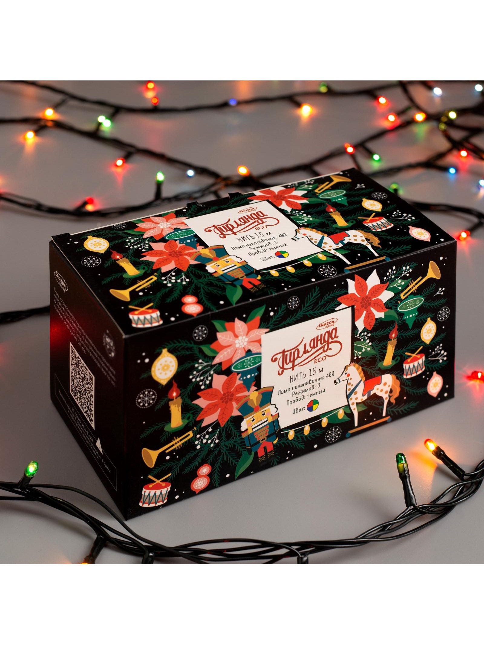 Гирлянда "Нить" 15 м, IP20, тёмная нить, 400 ламп, свечение мульти, 8 режимов, 220 В, 8x15x9 см., Luazon Lighting, Китай