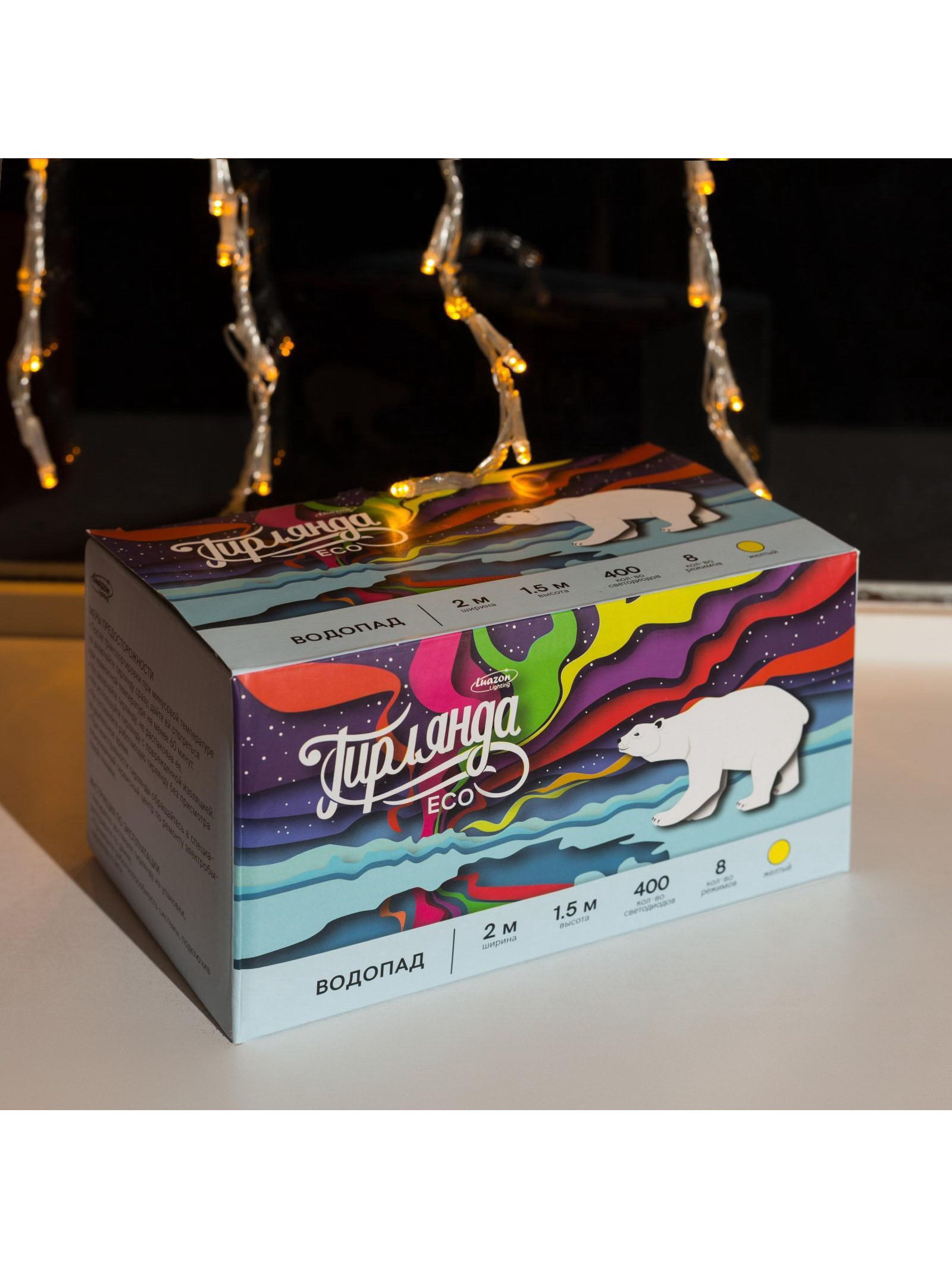 Размер упаковки: 13 x 11 x 13 см. Вид лампы: Светодиодная Насадки: Нет Цвет нити гирлянды: Прозрачный Применение: Внутреннее Размер, м: 2 x 1.5 Вид гирлянды: Водопад Количество режимов: 8 Наличие блока питания: Нет Тип подключения: С контроллером Режим работы: Задаётся контроллером Цвет свечения: Жёлтый tnved: 9405310000 Гарантийный срок, мес.: 12 Количество ламп: 400 Материал нити: ПВХ Необходимая комплектация: Не нужна Вид насадки: Без насадок Ширина, м: 2 Высота, м: 1.5 Степень защиты: IP20 Тематика праздника: Новый год Температурный режим: От -10 до +35 ℃ Тип питания: От сети 220 В