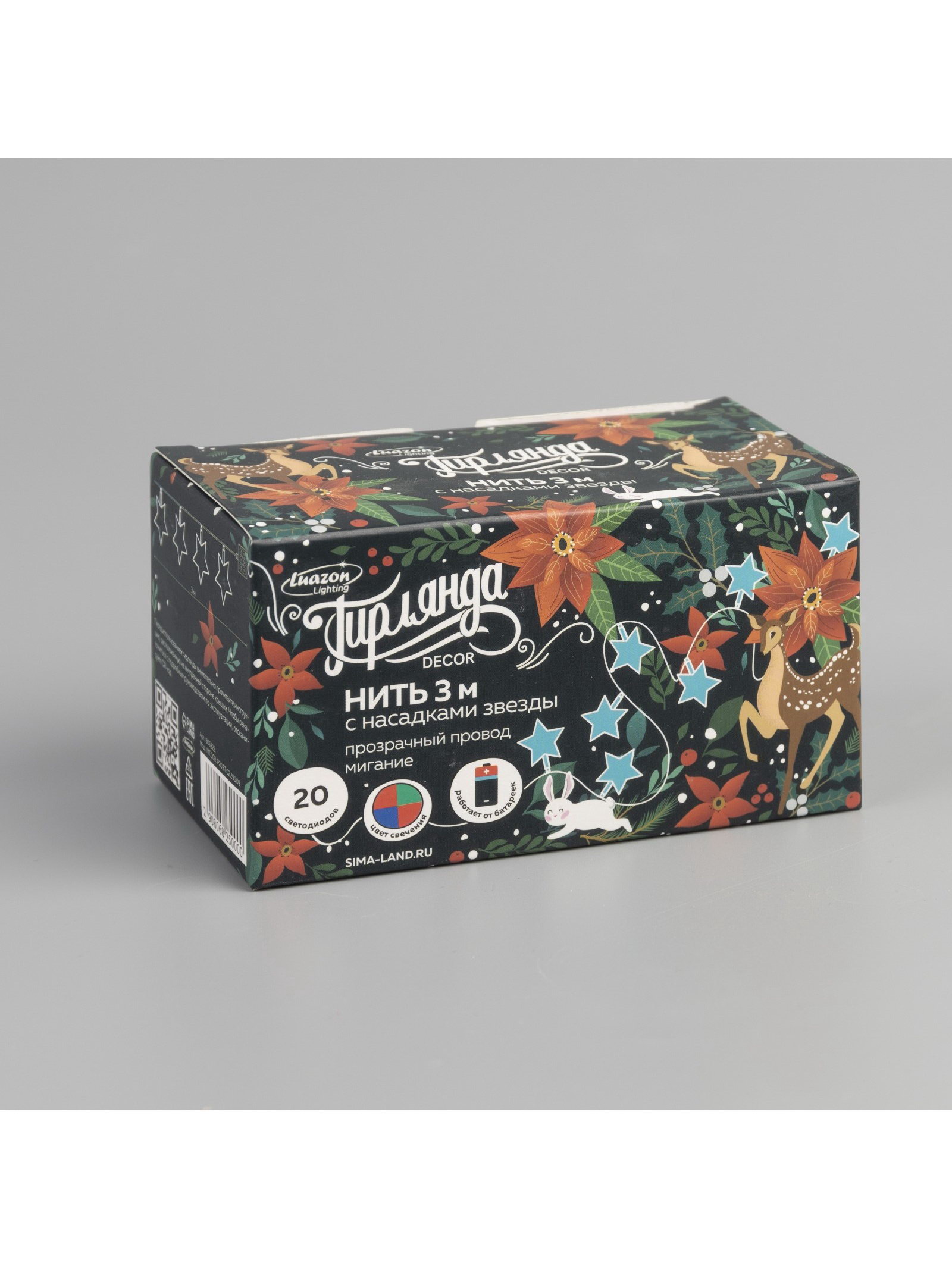 Гирлянда "Нить" 3 м с насадками "Звёзды", IP20, прозрачная нить, 20 LED, от батареек ААx3, свечение мульти, Luazon Lighting, Китай